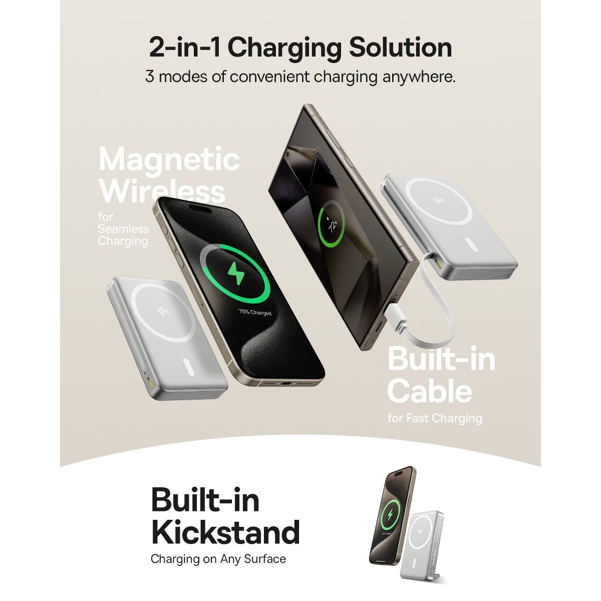 Get powerful, efficient charging with our 15W Nomos for MagSafe Portable Charger. Featuring Qi2 certification, you can trust a fast, secure, and efficient charge every time. With 15W ultra-fast wireless technology, your iPhone 15 can be boosted from 0% to 57% in just 30 minutes. The built-in two-way fast charging USB-C cable supports 45W output and 30W input, so you never have to worry about forgotten cables. With a 10,000mAh capacity, you can recharge your iPhone 15 Pro up to 1.8 times, making it an ideal power source for smartphones, earphones, video game consoles, and more. The foldable built-in stand allows for convenient desktop placement and charging while you watch your favourite shows. The smart display keeps you up to date with real-time updates on charging progress and estimated completion time Whether you need a portable charger MagSafe for your travels or a reliable portable charger for iPhone everyday use, this device exceeds expectations.