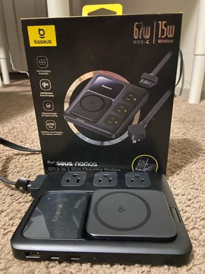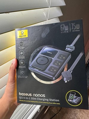 I’ve been using the Baseus Nomos Qi2 8-in-1 Slim Charging Station for a few weeks now, and it's quickly become a staple on my desk. It handles all my daily charging needs without taking up a lot of space, and I’ve found it to be both reliable and efficient. One of the standout features is the 67-watt USB-C fast charging, which works really well for my laptop and larger devices. It significantly cuts down the time I spend waiting for a full charge. The 15-watt wireless charging pad is also convenient—it's nice to just set my phone down without having to plug anything in, and it starts charging right away without any issues. What I really appreciate is that it can charge up to eight devices at once. Between the combination of USB-C, USB-A, and AC outlets, I’ve been able to power my laptop, phone, earbuds, and a few smaller accessories all at the same time. The layout of the ports is well thought out, so things don’t feel cramped even when everything’s in use. The slim, compact design is another plus. It doesn’t take up much room and looks clean and modern. It also feels solid and well-constructed, not flimsy or cheap. After a few weeks of daily use, I haven’t had any issues with overheating, inconsistent charging, or port failures. Everything continues to work smoothly, which gives me confidence in the overall build quality. This charging station has helped me reduce cord clutter and keep everything I need powered throughout the day. I would definitely recommend it to anyone looking for an all-in-one charging solution that’s both compact and powerful. I’ve actually already had someone ask me where I got it from so they can purchase.