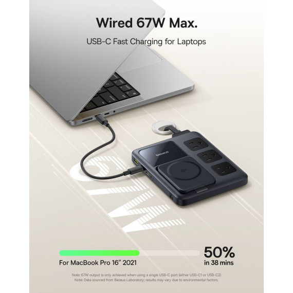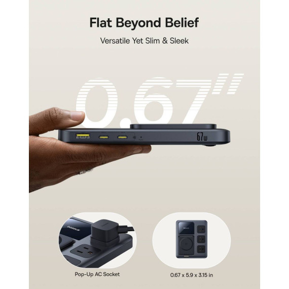 Enjoy flexible fast charging options with three versatile methods: AC charging, Qi2 magnetic wireless charging, and 67W USB-C fast charging. Whether you're at home, in the office, or on the go, you can choose the best method for your devices, ensuring they're powered up quickly and efficiently.