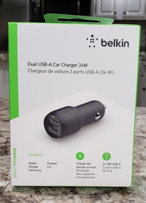 Belkin BoostCharge Dual USB-A Car Charger 24W with USB-A to Lightning Cable CCD001bt1MBK