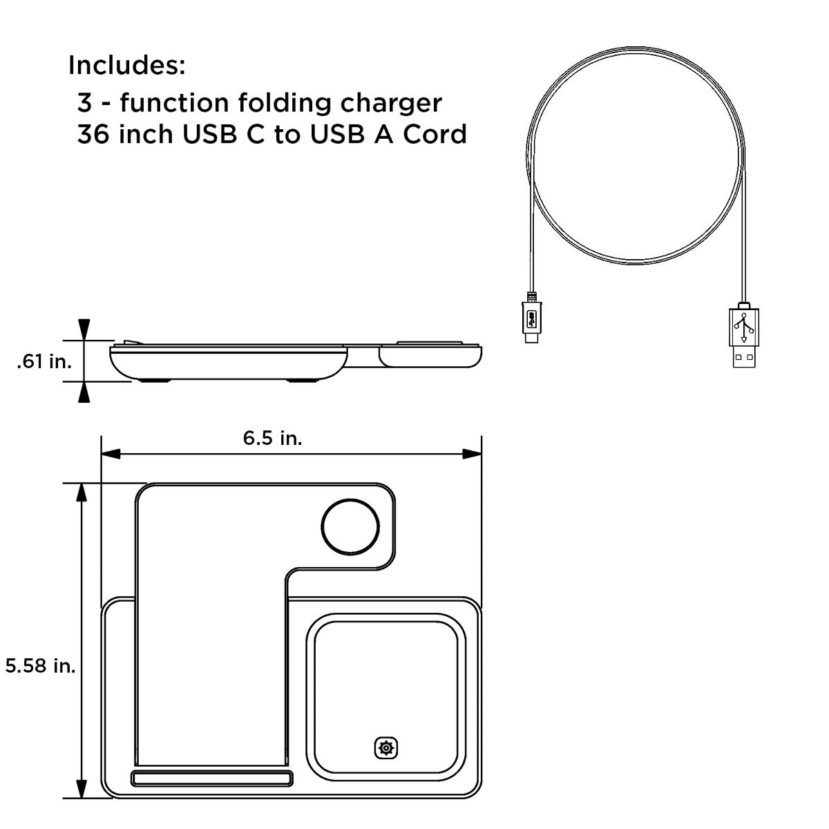 Charger, USB Cable, User Manual