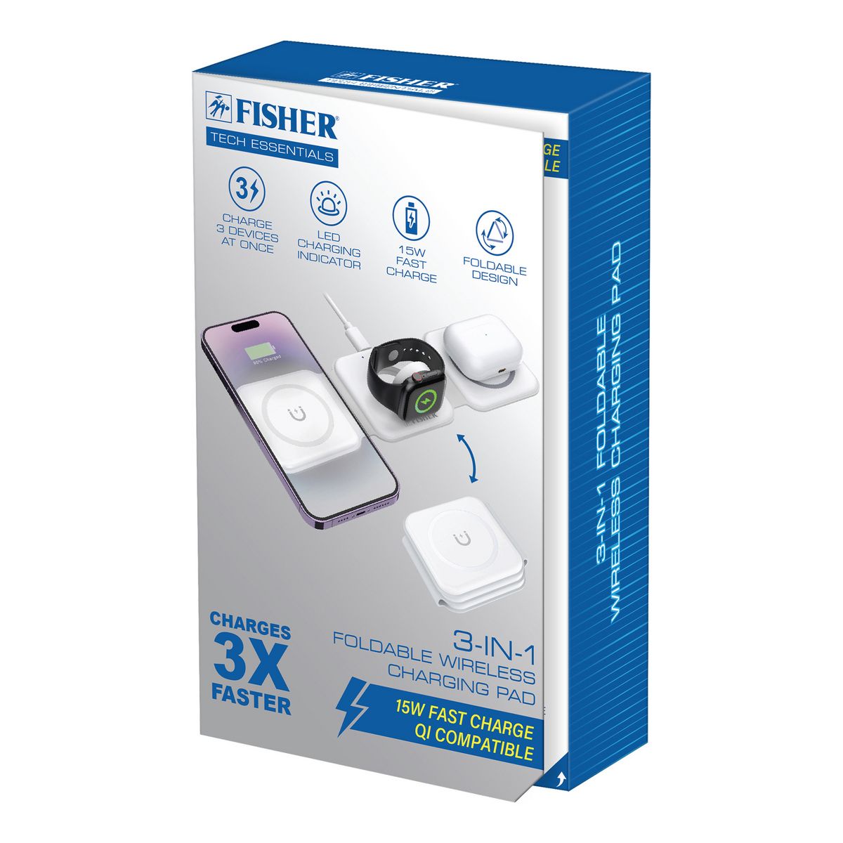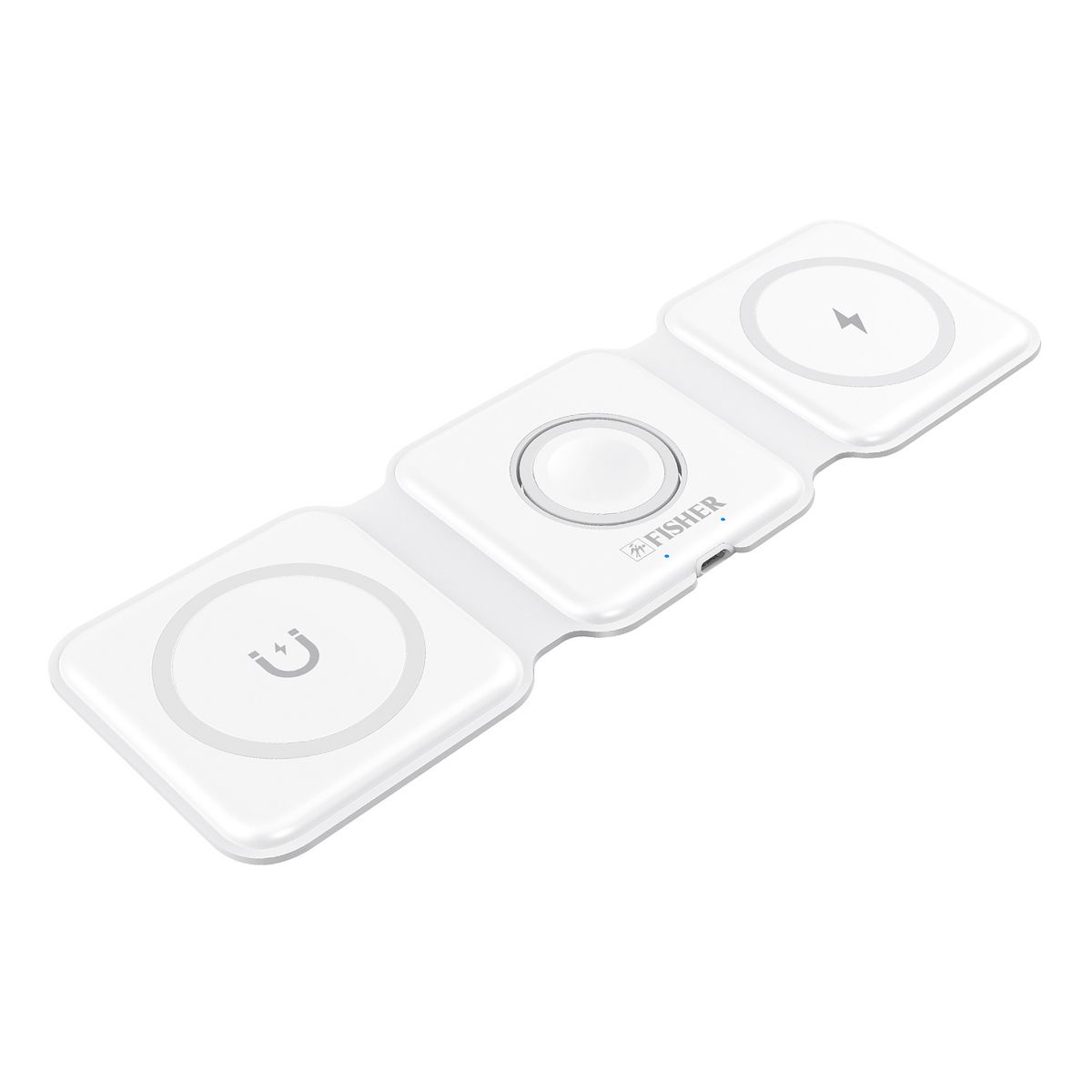 FISHER® Tech Essentials 15-Watt 3-in-1 Foldable Wireless Charging Pad (White)