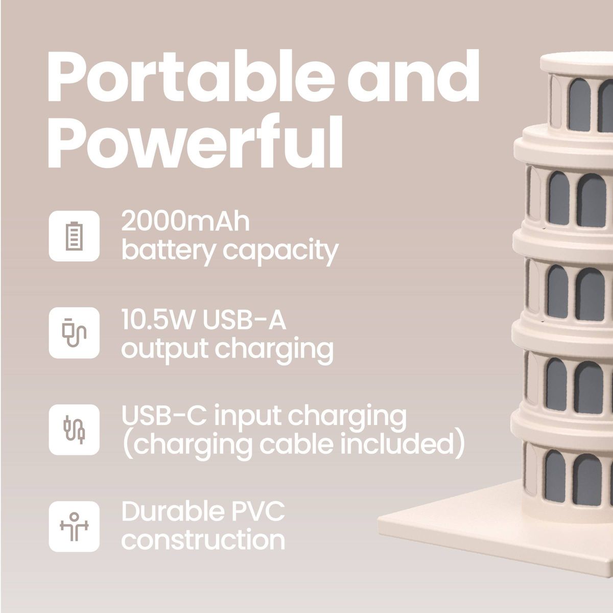 GEMS Figural 2000mAh Power Bank- Leaning Tower of Pisa