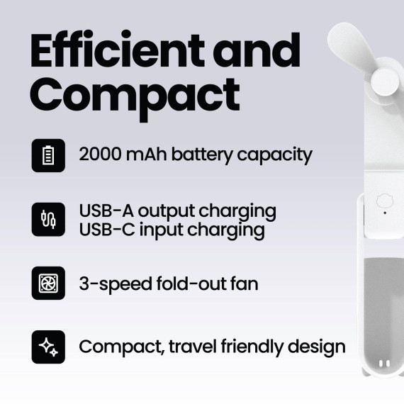 Stay cool and charged wherever you go with the GEMS Handheld Power Bank Fan. This smart 2-in-1 device combines a powerful portable fan with a built-in 2,000mAh power bank to keep you refreshed and your devices powered on the go. The fold-out fan features three adjustable speed settings, while the compact design makes it easy to carry in your purse, backpack, or travel bag. It includes a USB-C charging cable for quick recharging and doubles as a backup power source for your phone or small electronics. Perfect for commutes, vacations, or outdoor activities, this GEMS Handheld Power Bank Fan keeps you comfortable and connected anytime, anywhere.