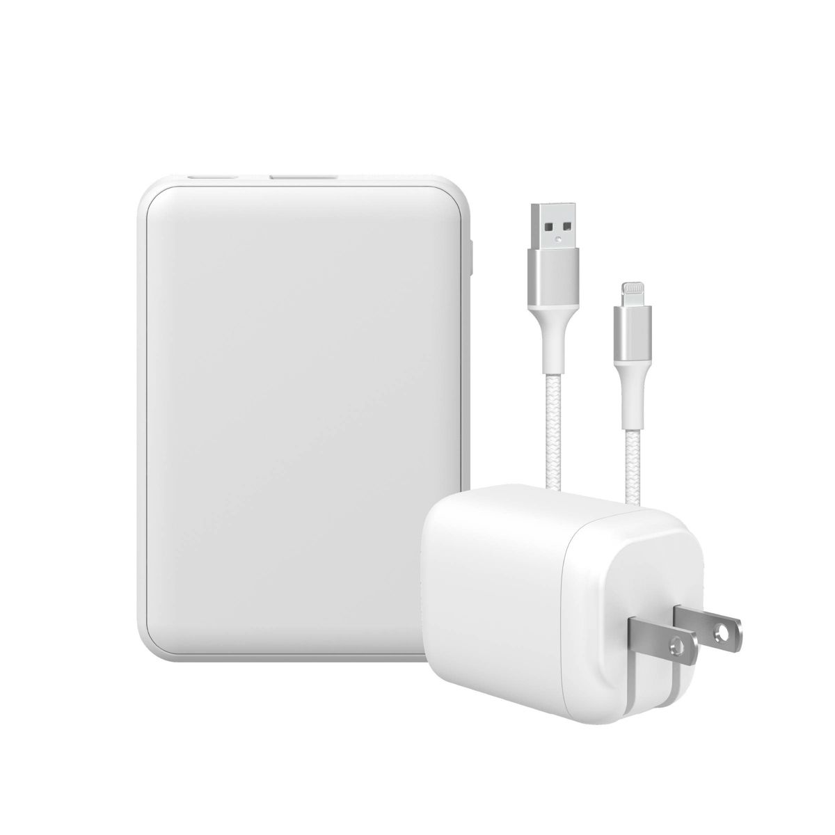 GEMS USB-A to Lightning Charging Gift Set with 5000MmAh Power Bank, Cable, and Wall Charger - White