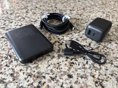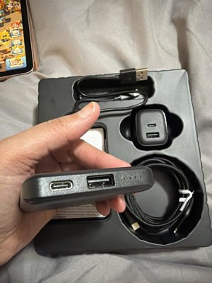 The braided USB-C to lightning cable is the highlight of this charging kit. My only regret is that I now have an iPhone 15 with a USB-C port. It does also have a USB to USB-C cable but it lacks the braided cord of the other cable. The 5000 mAh battery pack is enough to charge my iPhone once per recharge, which is fine for everyday use. The size is perfect for a pocket. The wall adapter has USB and USB-C ports and a folding plug, which is great for travel.