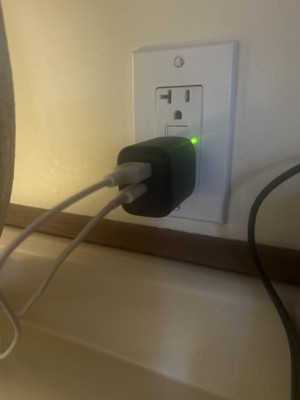 This is a great little wall charger/portable charger. It has the smaller opening for my iPhone charger and the larger port for everything else. It comes with a chargeable battery that can be taken anywhere on the go which is always helpful. I just slip the charged portable bank in my purse and I never worry about running out of battery power.