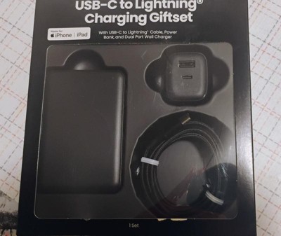 GEMS USB-C to Lightning Charging Gift Set with 5000MmAh Power Bank, Cable, and Wall Charger - Black