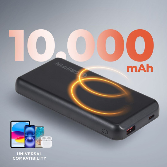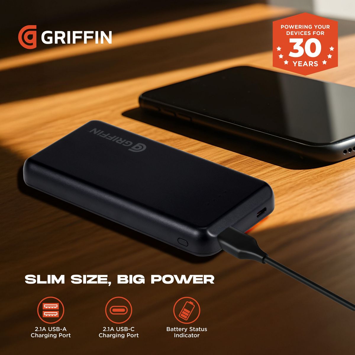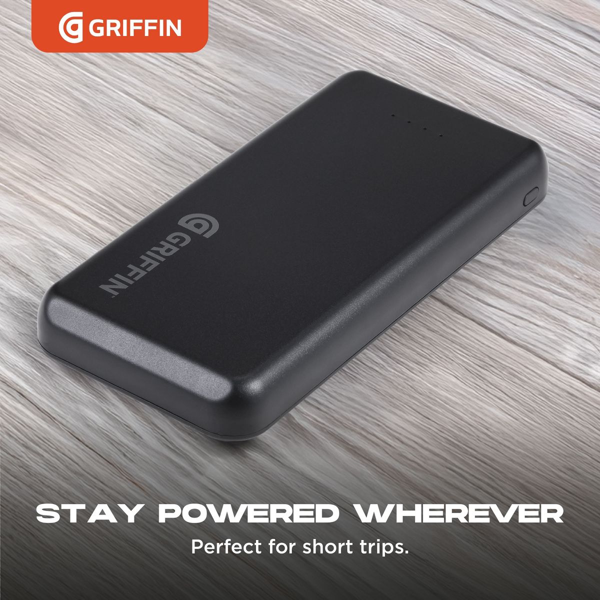 Power up smarter with the GRIFFIN 10,000mAh phone battery bank — the