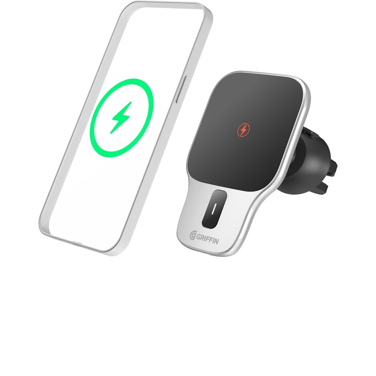 The Griffin 15W Wireless Charging Vent Mount offers fast wireless charging with strong magnetic grip and flexible viewing positions. Its sleek, compact design fits easily in vehicle vents and securely holds your phone whether charging or not, making it an ideal accessory for safe, convenient driving.