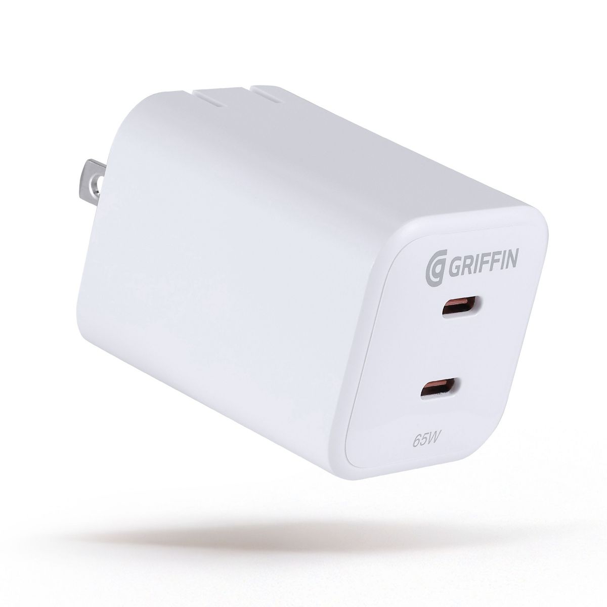 GRIFFIN 65W GaN USB-C Wall Charger, Dual Port USB-C Plug with 65W and 20W PD Outputs, Foldable Portable Adapter