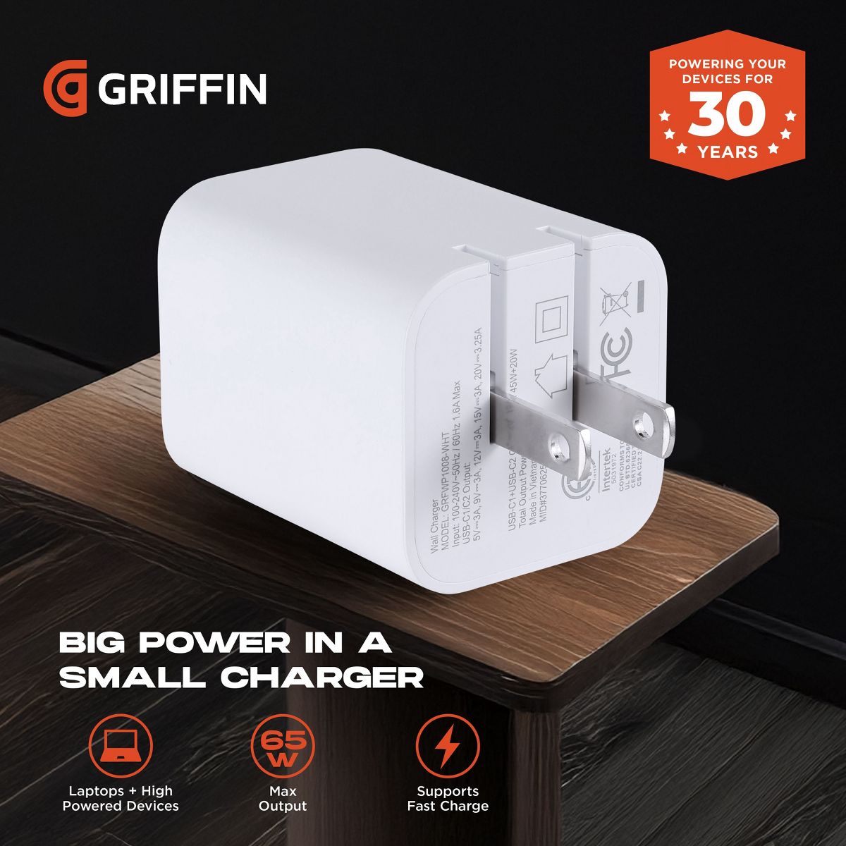 devices, the GRIFFIN 65W usb c wall plug offers real versatility. From fast laptop