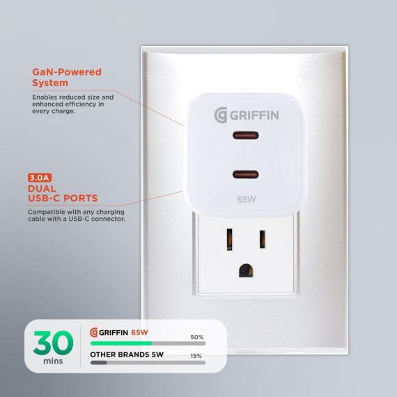 Charge smarter, faster, and more efficiently with the GRIFFIN 65W GaN USB-C