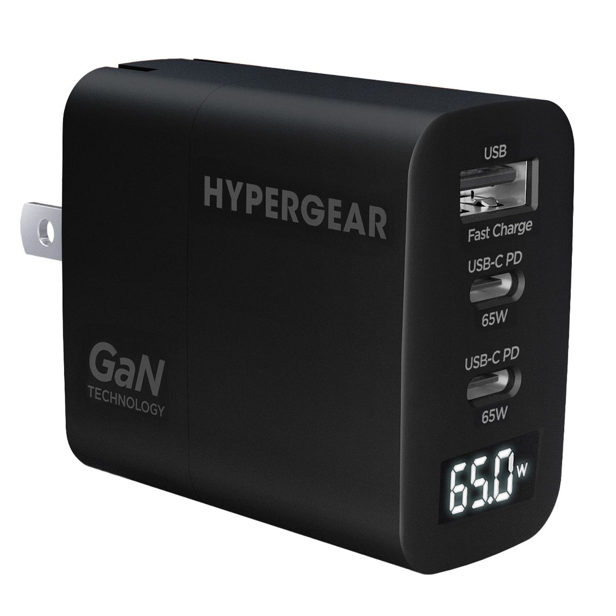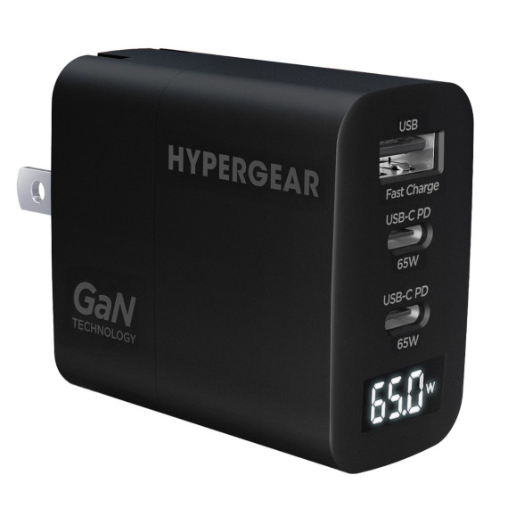 HyperGear® HyperGear SpeedBoost 65-Watt USB-C PD Tri-Port GaN Laptop Wall Charger with PPS and Digital Display (Black)