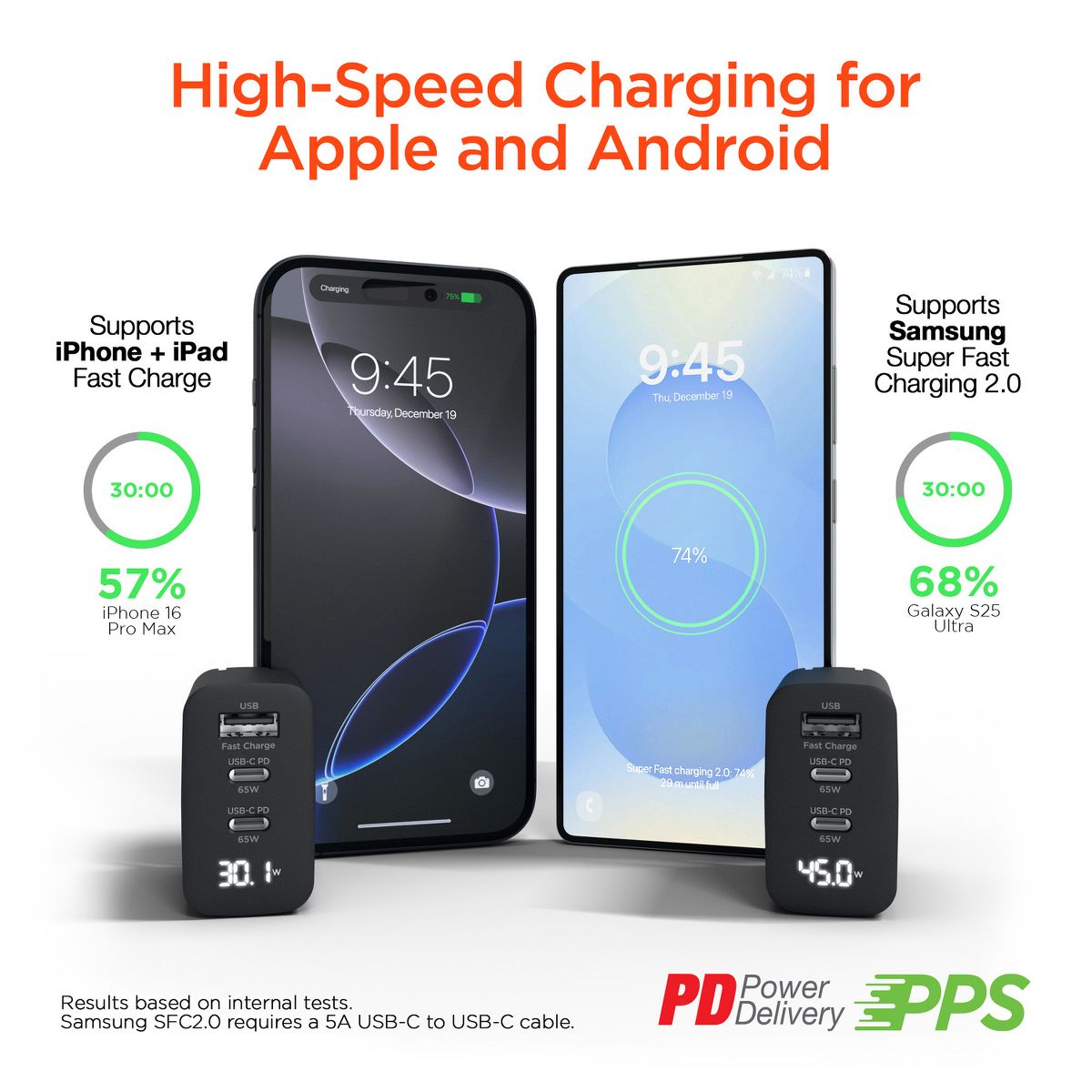 Charge your devices on the go thanks to the Multi-Travel 65-Watt PD Charger from HyperGear®. Charge up to 3 USB devices at once and the ultra-slim design means you can plug the charger into tight spaces. The LCD Digital Power display allows you to see how well your devices are charging.