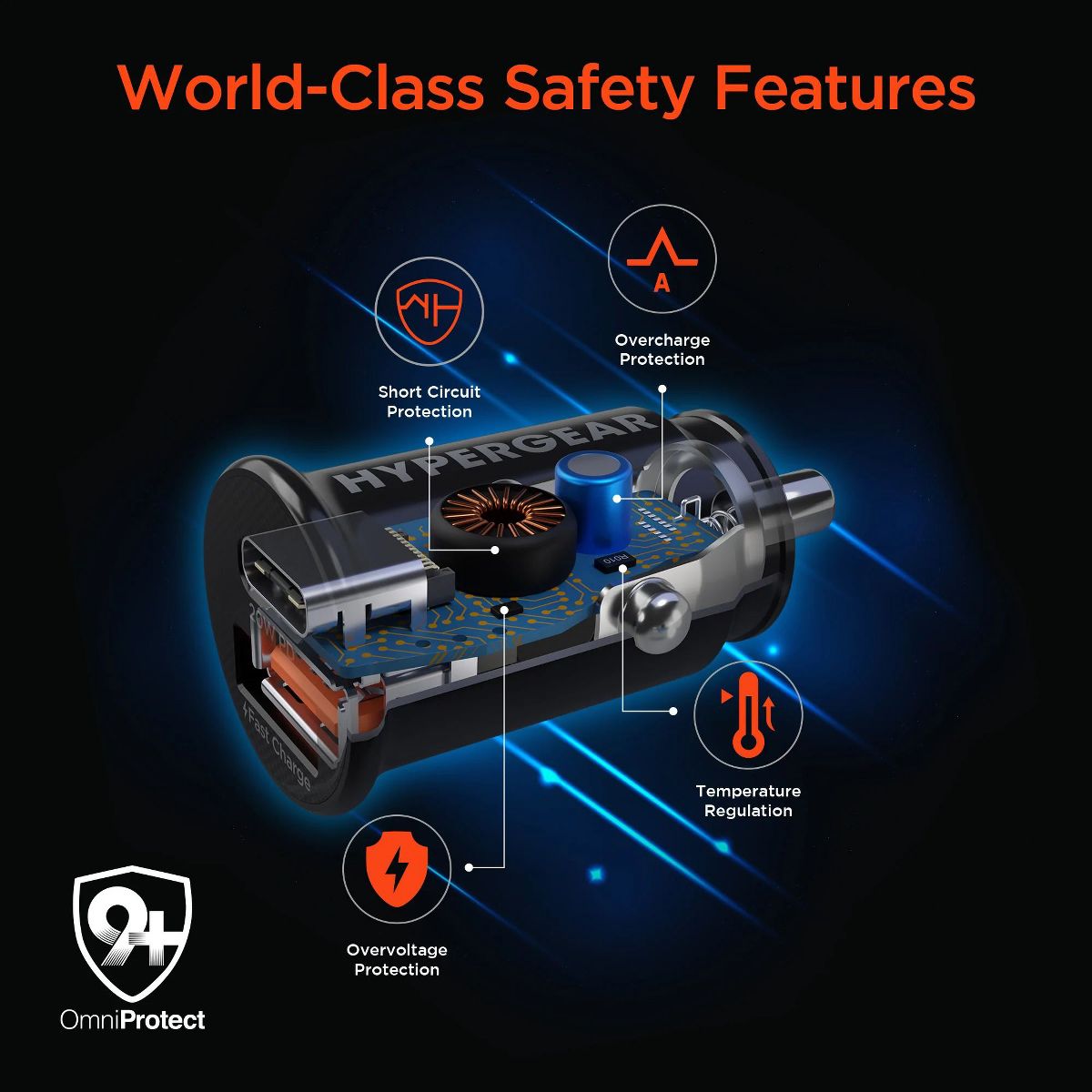 This Mini Dual Car Charger is perfect for active lifestyles, combining the newest USB-C Power Delivery technology with Adaptive Fast Charging so you can recharge your iPhone or Galaxy from 0 to 50% in as little as 30 minutes! Your car only has one outlet to use, so we squeezed two ports into this low-profile charger without taking up any extra space – fast charge your phone while you also power up your smartwatch, GPS, or earbuds at the same time. The smart circuitry inside makes sure any device will charge safely and at max speed, with zero overcharging. Whether it’s your daily commute or you’re driving a rental on vacation, plug in whatever you have and always arrive fully charged!