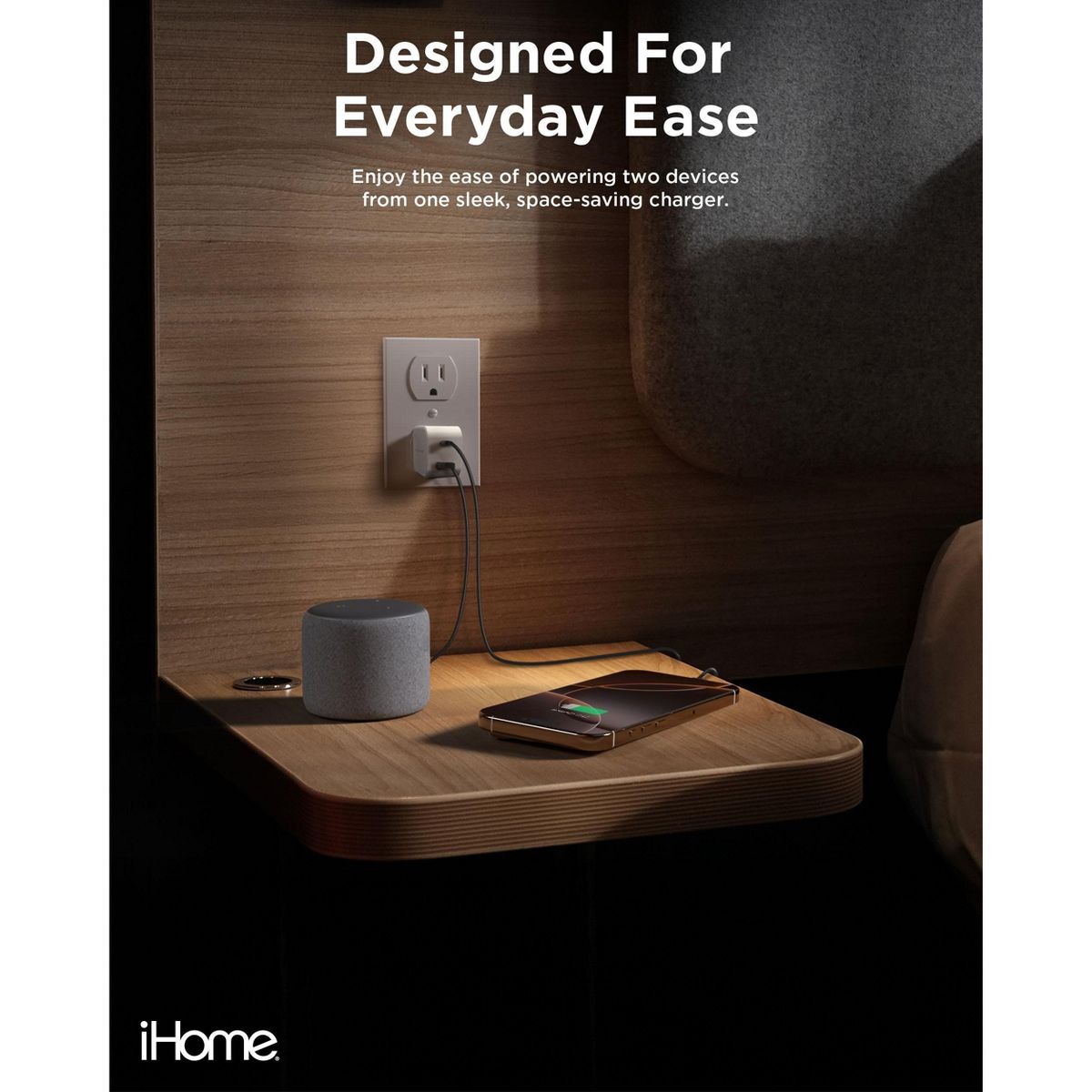 iHome 20W Dual Port Wall Charger, USB-C & USB-A, Fast Charging, Foldable Plug, Universal, Compact for Travel
