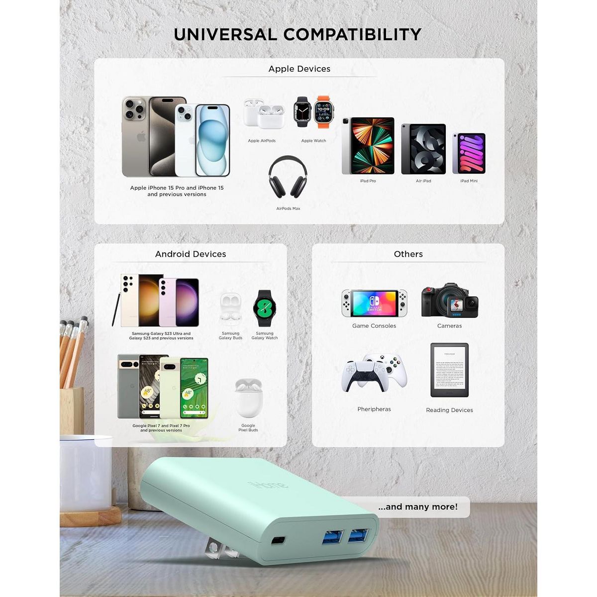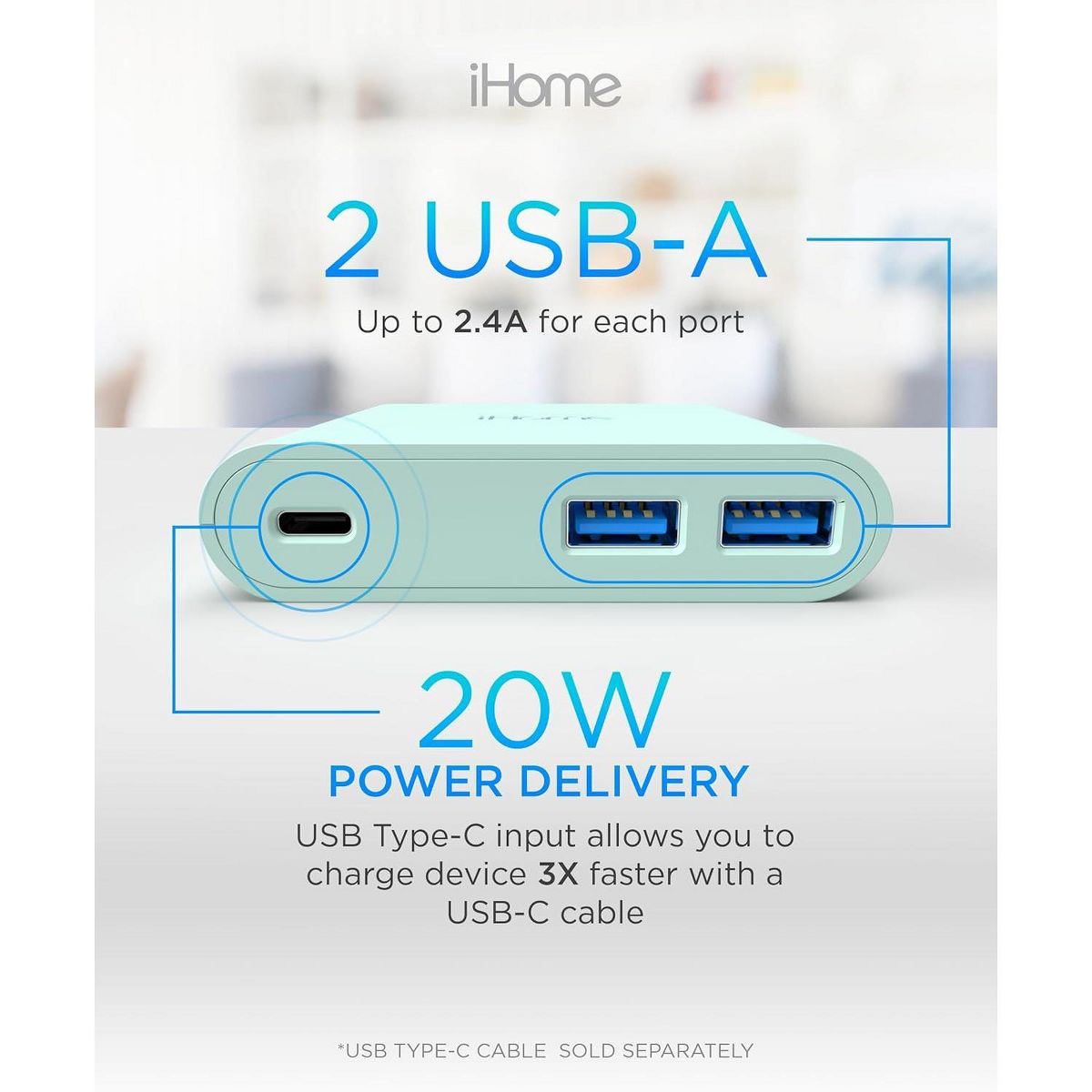 Experience the power of multiple charging with iHome's 32W AC Pro Multi Port USB Wall Charger - your ultimate charging hub. This compact and sleek usb charging hub is equipped with 3 total USB ports - 1 USB C port and 2 USB A ports. Charge your iPhone, iPad, Apple Watch, or any other mobile device simultaneously, without the need for multiple charger blocks. The USB-C port supports power delivery, offering you the luxury of charging 2x faster, with 50% in just 30 minutes, making it a true usb c fast charger. This usb c wall charger has a unique flat and slim design, allowing it to fit snugly behind tight spaces and furniture, making it the perfect sleek socket for your charging needs. With its universal compatibility, it works with all USB charging cables, transforming into a versatile charging station for Apple devices and beyond. The foldable prongs offer ultimate portability, making it an excellent travel companion. It can easily fit in your bag or suitcase, ensuring you always have a charging station at your fingertips. Gone are the days of carrying around multiple chargers for multiple devices. With the iHome 32W AC Pro Multi Port USB Wall Charger, you have a single, powerful charger for all your gadgets. The type c charger offers fast charging, making it an ideal iPhone fast charger or iPad charger. This usb c charger block ensures your devices are always ready and charged. Whether you're at home or on the go, this usb wall charger is your one-stop charging solution. It isn't just a usb charger, or a usb c charger block, or even a usb wall plug. It's all of these and more, rolled into one. It's a charging station, a fast charger, a wall charger, and a charger block, designed with a modern, sleek look that complements any space. Experience the power and convenience of the iHome 32W AC Pro Multi Port USB Wall Charger, the ultimate usb charging hub for all your devices. With iHome, you get more than just a charger, you get a charging solution that fits your lifestyle.