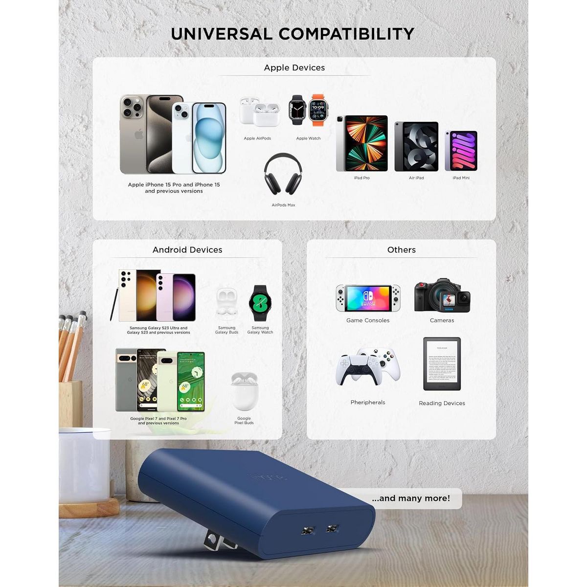 The iHome AC Pro stands out among chargers for multiple devices with its foldable prongs, making it easy to pack into your bag or suitcase. Whether you're commuting to work or on a holiday, these phone chargers ensure your devices are always charged, no matter where you are.