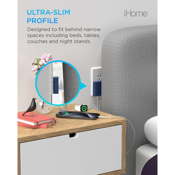 Unlike the typical bulky iPhone charger plugs, the iHome USB-C charger block features a flat, slim design, making it a practical 20w USB-C power adapter. Easily access hard-to-reach outlets and add a stylish touch to your home or office with these sleek chargers.