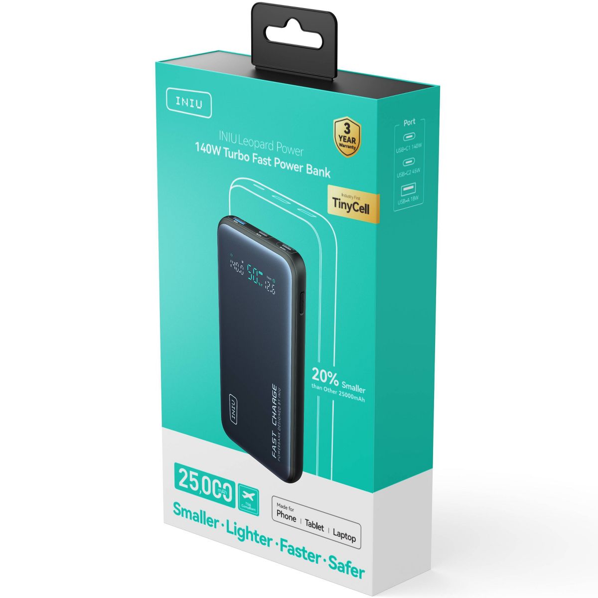 INIU Leopard Power 25000 mAh PD 140W Fast Charging Power Bank - Black: USB-C, Rechargeable, 3 Devices