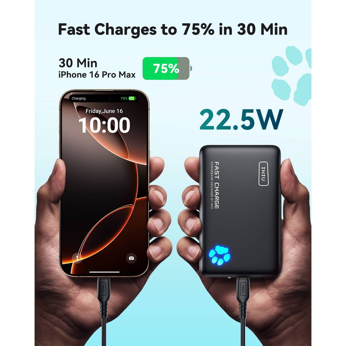 INIU PowerPaw becomes a daily essential. From the moment I picked it up, the sleek, compact design felt both premium and practical. It slips effortlessly into a pocket or bag, yet delivers an impressive amount of power for its size.