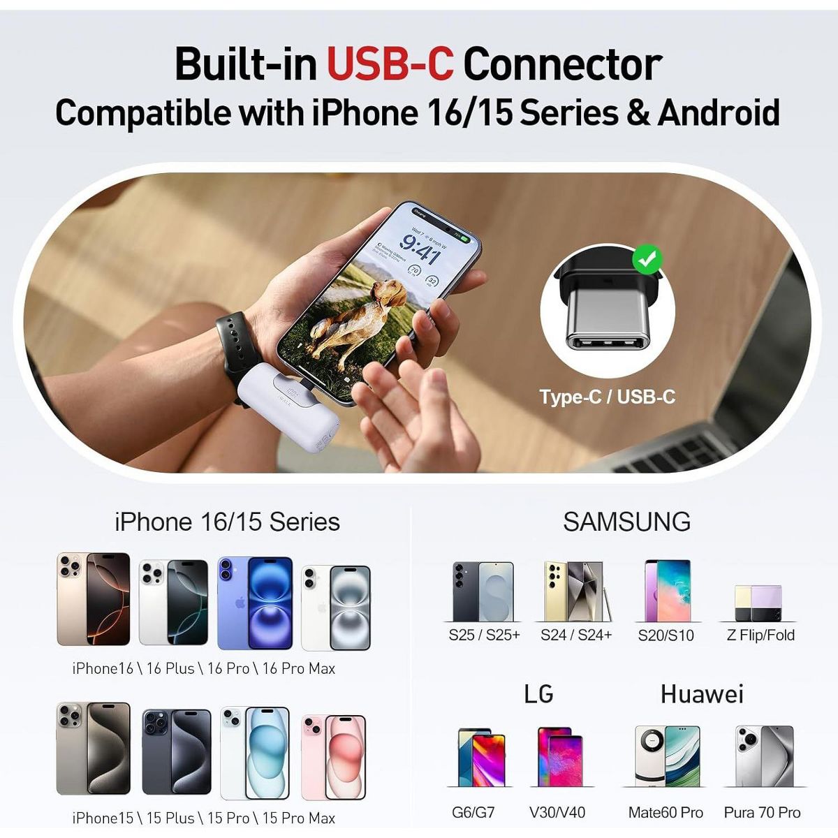 iWalk Mini 5500mAh Portable Next Gen Charger 22.5W Fast Charging USB-C, iPhone 15/16, Latest AirPods, Samsung, Google, Nintendo Switch & More- Black