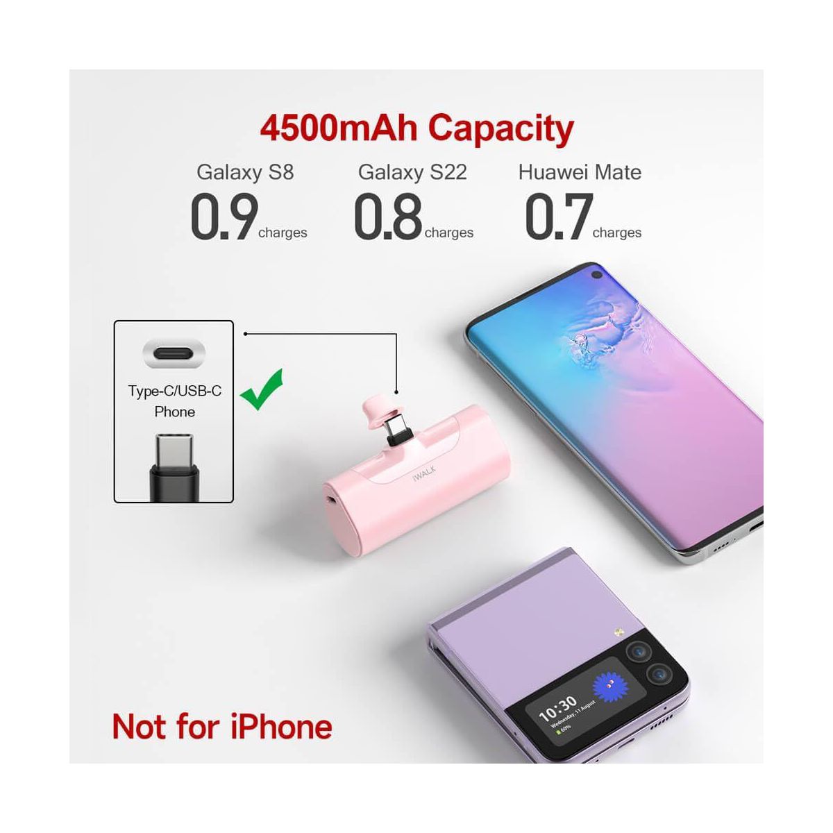 Introducing the iWALK 4500mAh Portable Charger - the ultimate power bank designed to keep your smartphone charged and ready for action, no matter where your day takes you. With this sleek and compact device, you'll never have to worry about your phone running out of juice again. Never be caught off guard by a dead smartphone battery again. The iWALK 4500mAh Portable Charger is your reliable, on-the-go power solution for all your mobile devices. Elevate your day-to-day experience by staying connected and fully charged. Order your iWALK Portable Charger today and keep the power in your hands.