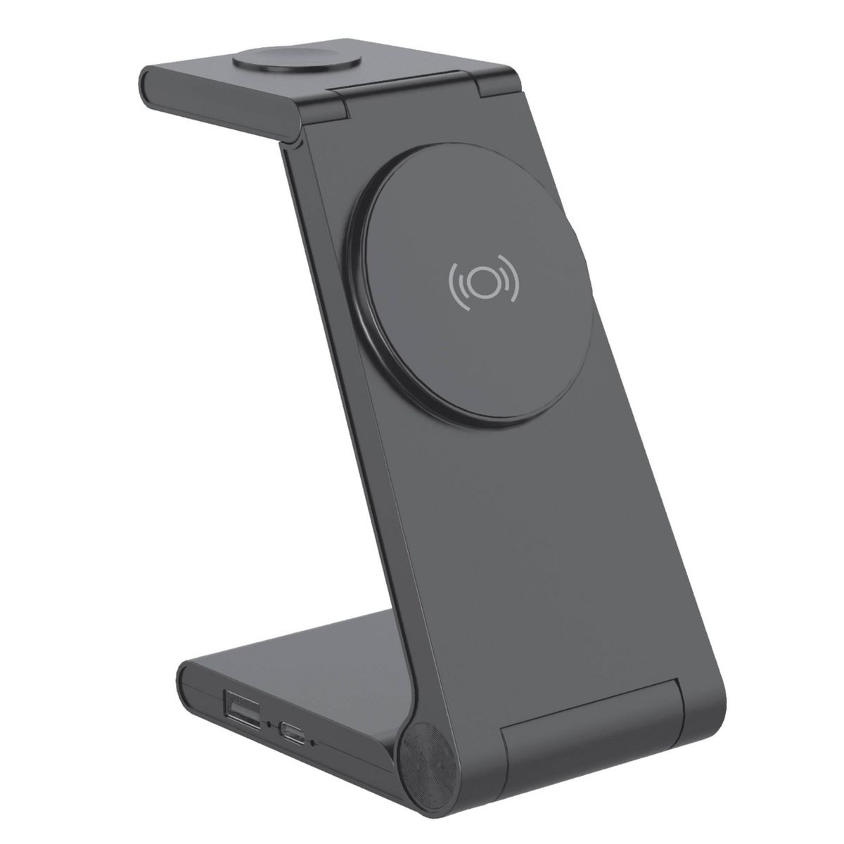 Just Wireless 3-in-1 Magnetic Wireless Charger - Black: USB-C, MagSafe Compatible