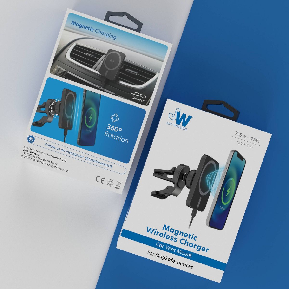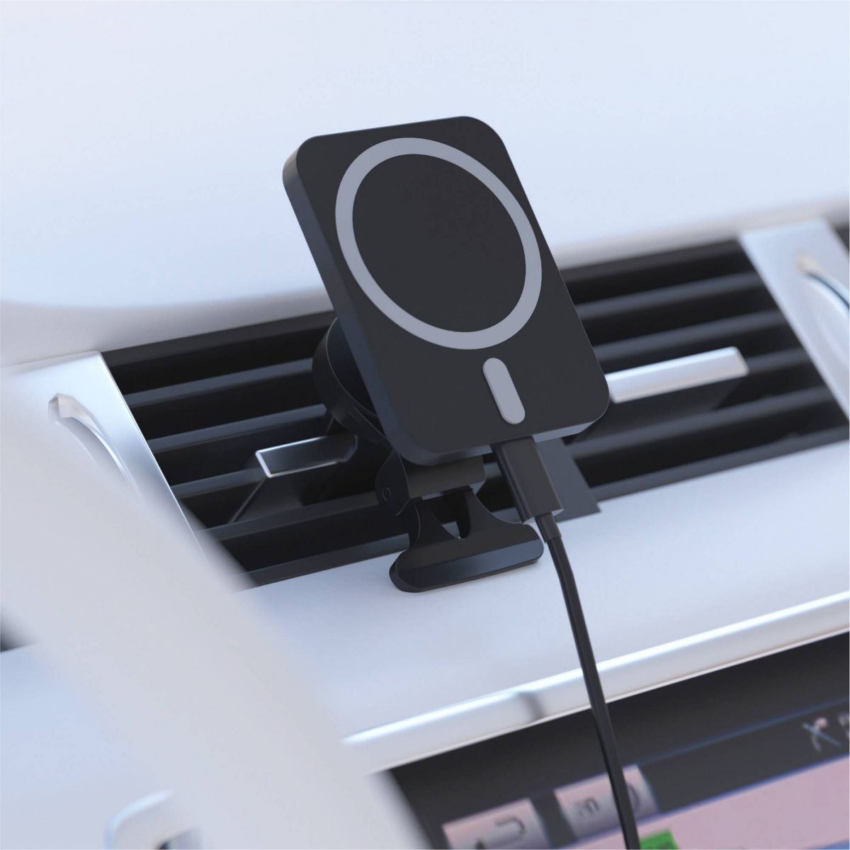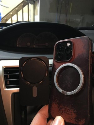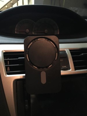 The magnetic Magsafe® compatible car vent mount gives your device a strong magnetic grip and hands-free operation. This is a perfect accessory for MagSafe® enabled iPhone devices. With 15 Watts of charging power, it will charge your MagSafe® enabled iPhone quickly.