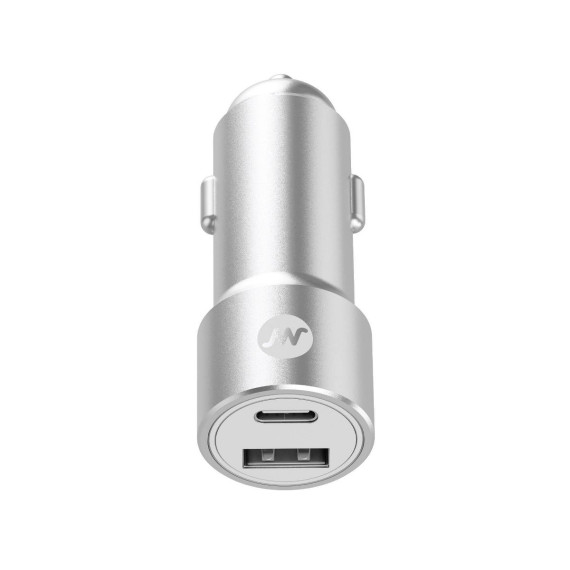 Just Wireless Pro Series 42W 2-Port USB-A & USB-C Car Charger - Silver & White