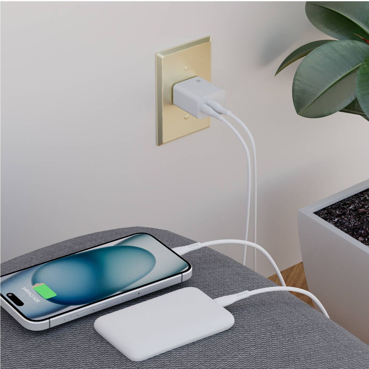 The 20W charger features both USB-A and USB-C outputs, delivering efficient charging for multiple devices at once. The compact power bank ensures your devices stay powered while you travel, with dual outputs for simultaneous charging.