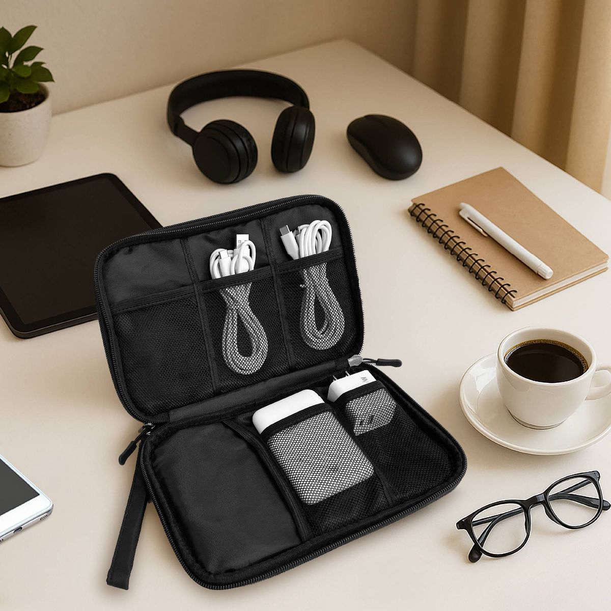 This is a great set! It handles all my phone charging needs- the portable charger is a huge plus! My favorite part is the organizing case. It has a compartment for everything and even a bonus section for adding any additional items you may need! This would make a great holiday gift as well!