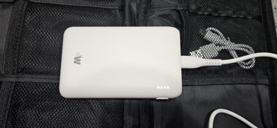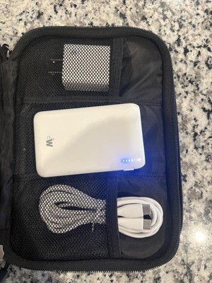This compact kit comes with everything you need to keep your devices (USB-C compatible) charged on the go. The power bank comes charged so you can use it immediately. There's an extra compartment you can add things to and it's not too bulky.