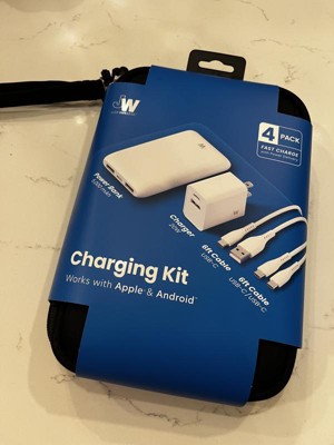 The Just Wireless 4 pack Charging pack is great. We love it. Everything is conveniently packed in a cute carrying case. Everything you need for traveling or to keep in your car for emergencies. Great to keep on hand for the kids.