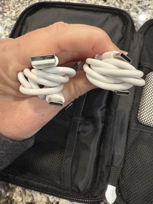 Excellent set for a iPhone (or android) user. This covers it all-usb to usb-c, usb-c to usb-c (both 6 feet), a power bank and a 20w dual usb charger, all neatly organized in a lightweight kit. Extra space in the kit for additional chargers, like an Apple Watch cord. No more digging around for cables, keep them organized!