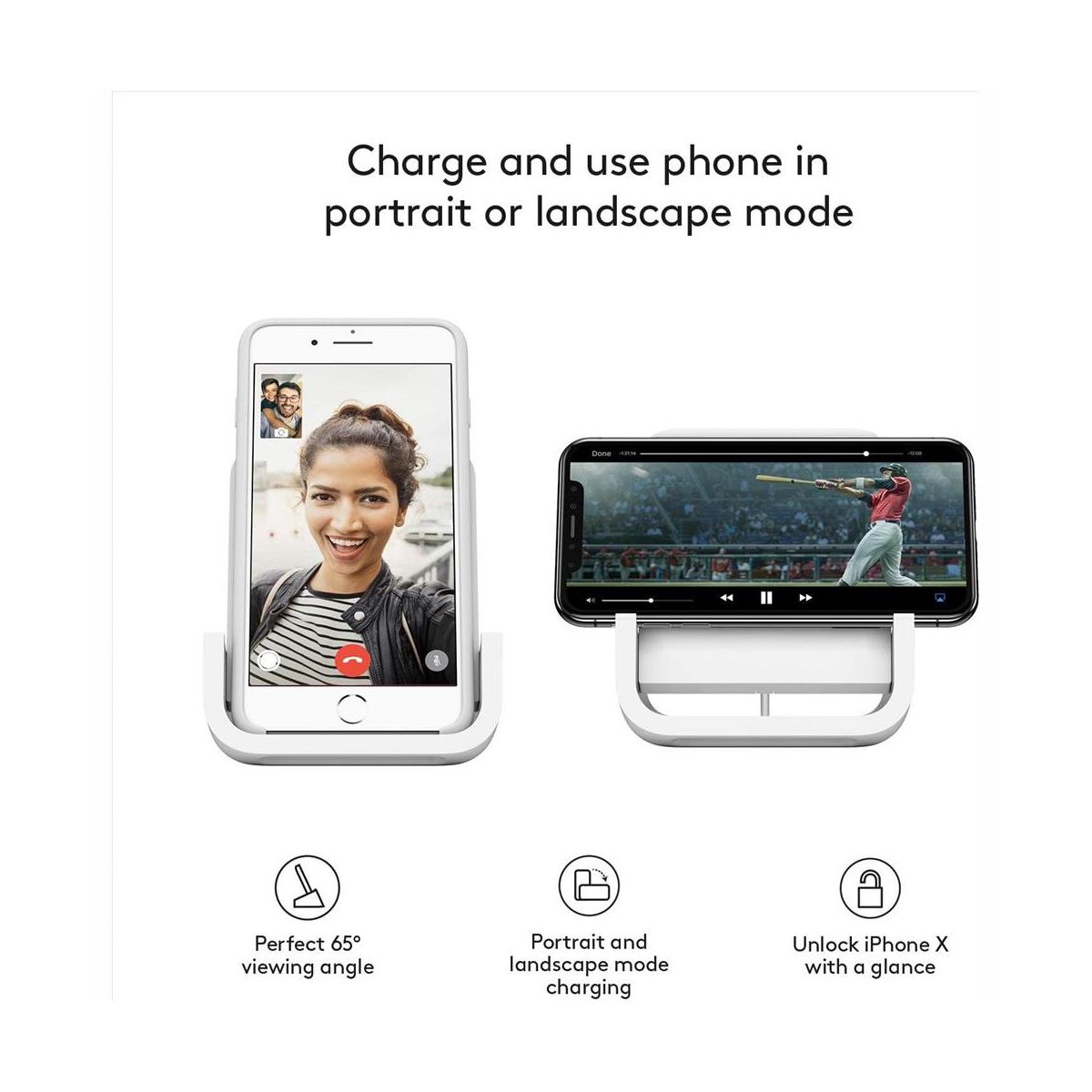 Stand up for better wireless charging with POWERED for iPhone, the wireless charging stand that lets you use your phone while docked in portrait or landscape mode. POWERED is Qi Certified and optimized to deliver up to 7.5W charging to iPhone and 5W to other Qi-enabled smartphones.