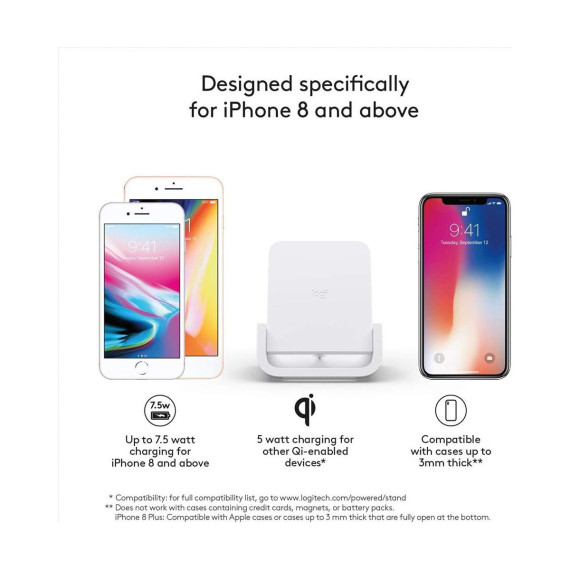 Logitech Powered Wireless Charging Stand for iPhone 8, 8 Plus, X, XS, XS Max XR