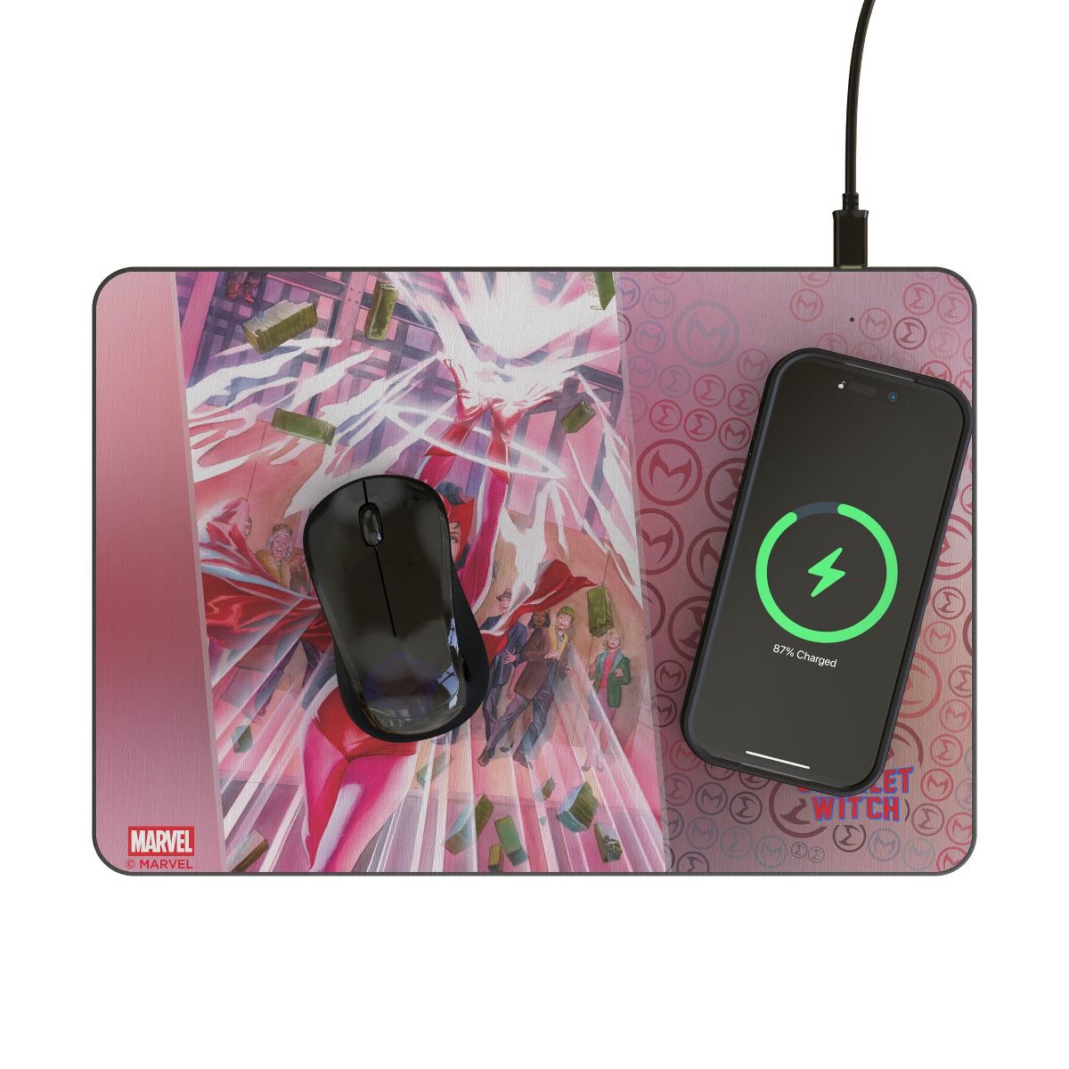 With the Mousepad and Wireless Charger, you will have the combined functions of accurate mouse movement and wireless inductive cell phone charging. The mousepad is thin and lightweight with a non-slip base for mouse accuracy and the charging station provides a 15-watt charging capability. Fantastic for home and office use, the officially licensed Mousepad and Wireless Charger is the perfect office accessory. Designed and decorated by Keyscaper in Tualatin, Oregon, USA.