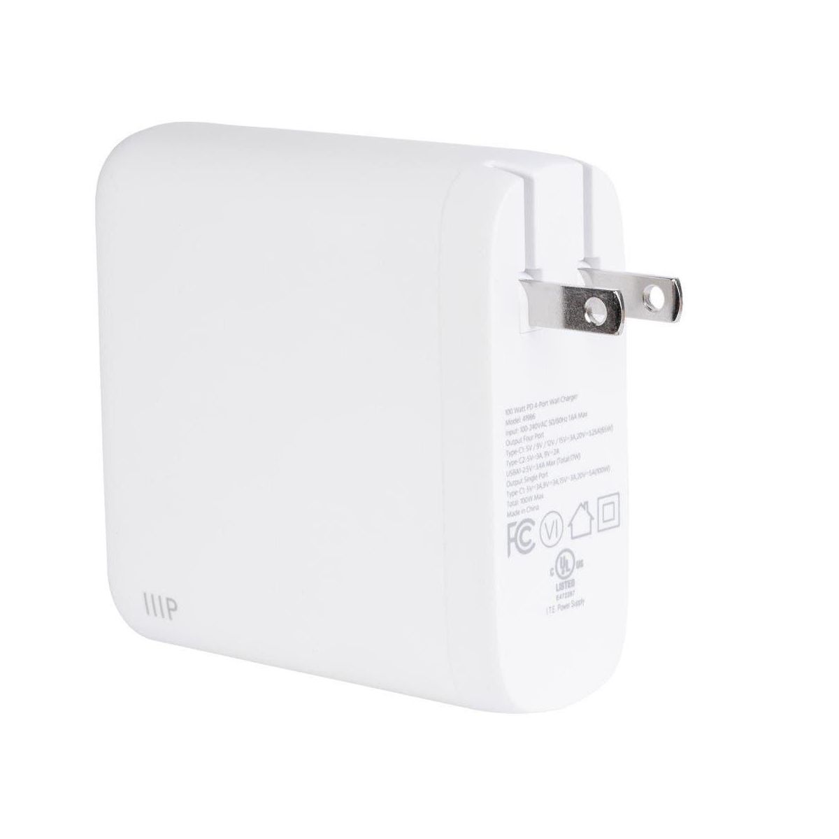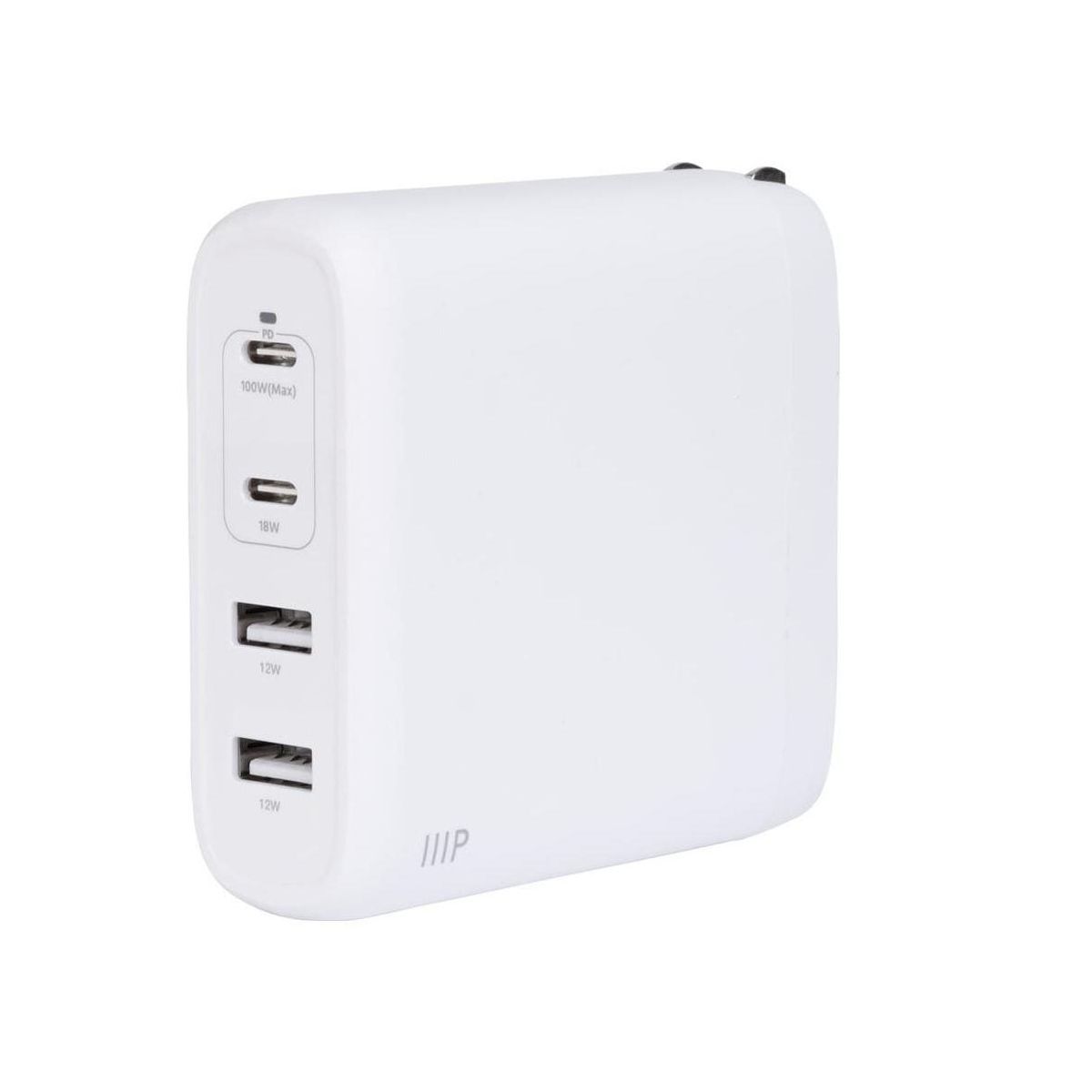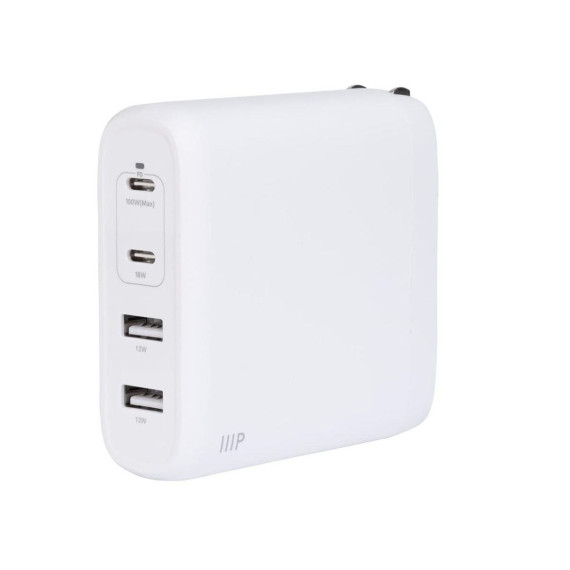 Monoprice 100W 4-Port GaN Charger - Fast Charge, Foldable, PD Technology, 2x USB-C, 2x USB-A, for MacBook, iPad, iPhone, Galaxy