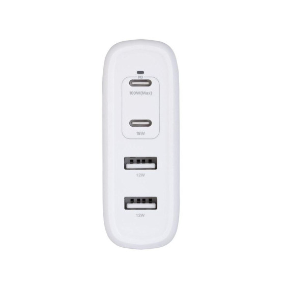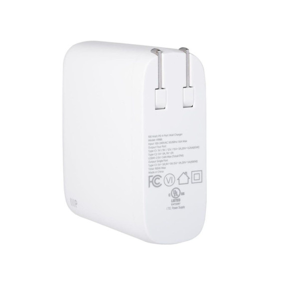 Rid yourself of outdated chargers along with their bulk size and slow charging speeds. Upgrade to an ultra compact, efficient, safe, and powerful 4-Port USB Type-C charger with Gallium Nitride (GaN) technology from Monoprice! Gallium Nitride is a superior material for semiconductors than traditional silicon, with higher voltage levels, need for fewer supporting components, and more efficient current transfer. This means there is less power loss to heat, a smaller form factor, and significantly faster charging than silicon-based chargers. Featuring 100W of Power Delivery (PD), this charger provides the fastest and most efficient charging for Apple iPhone and iPad, Samsung Galaxy S, other Android phones and tablets, laptops, and any other device with a USB-C power input.
