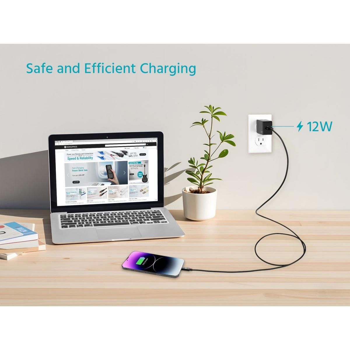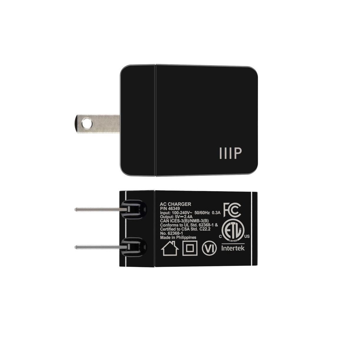 Monoprice 12W USB-A Wall Charger - Foldable, Compact, for Phones, Tablets and Electronic Device, Black