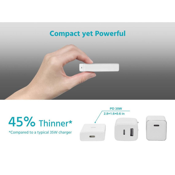 Monoprice 2-Pack 35W Ultra Slim USB-C GaN Charger - Fast Charge, Foldable, PD3.1 & PPS