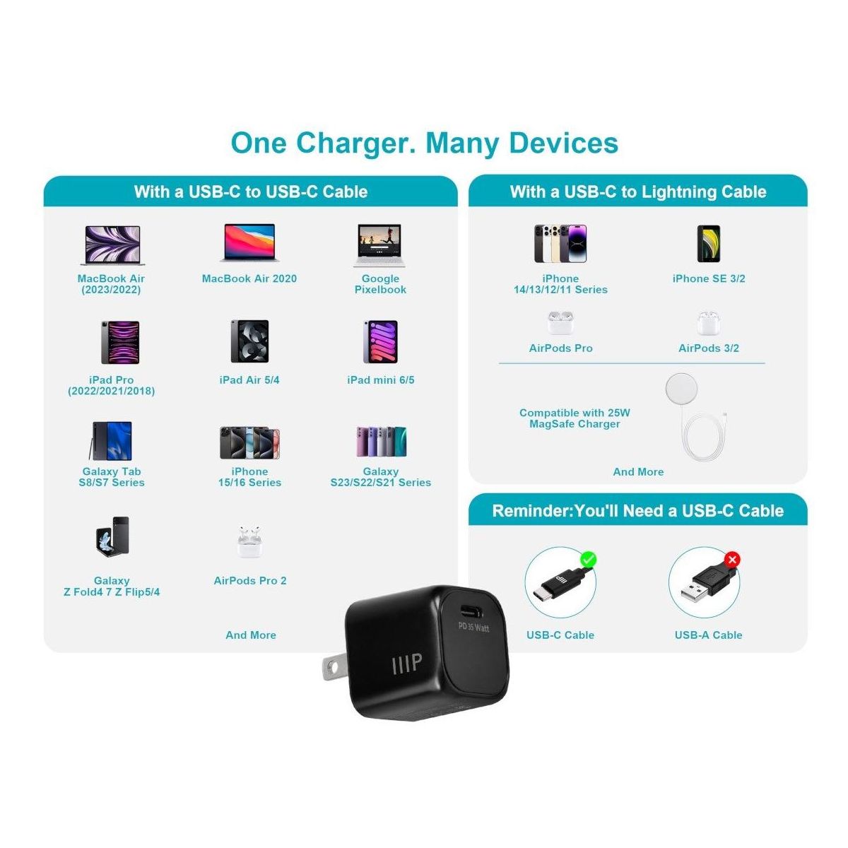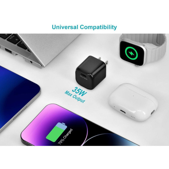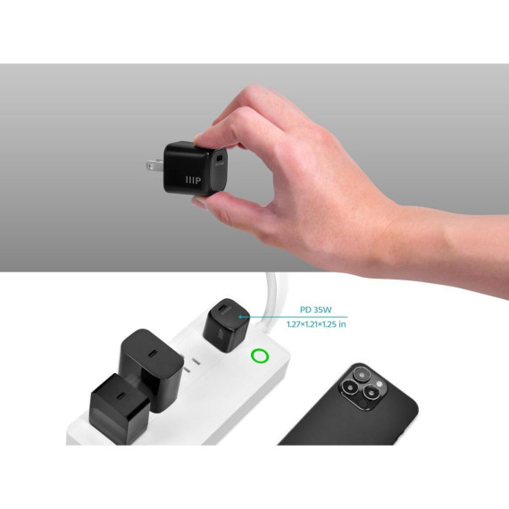 Monoprice 2-Pack USB-C Mini GaN Charger - 35W PD 3.0, Fast Charging, Compatible with iPhone, iPad, Samsung Galaxy, Black