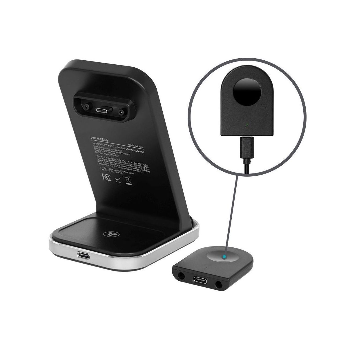 Monoprice 3-in-1 Wireless Charging Station - Bundled with 3.0 Wall Charger, Fast Charging, Detachable Watch Charger, for iPhone, Apple Watch, AirPods