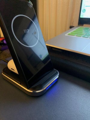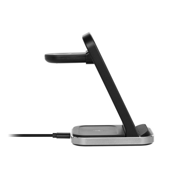 Charge your Apple devices faster with the powerful and compact Monoprice 3-in-1 Wireless Station. Stay organized with dedicated spots to power up your Apple phones, watches, and wireless earbuds simultaneously in one centralized charging station. Quickly charge your connected devices with high-power charging up to 15W. Charge your phone and adjust it either vertically or horizontally, depending on the task at hand: answering a call on FaceTime, listening to music, watching a movie, or using your iPhone in the new Nightstand Mode. The Apple Watch charger is detachable and can be used independently, allowing more flexibility and charging options. The triple-sense LED indicator shows you each device being charged for peace of mind. The compact footprint is less than 4" deep—freeing up space on your nightstand, side table, or desk. This charging station doesn’t need any complicated setup as it comes ready to use right out of the box with its AC power adapter and USB-C cable. Compatible with all the latest Apple iPhone, Apple Watch, and AirPods/AirPods Pro models that support wireless charging.
