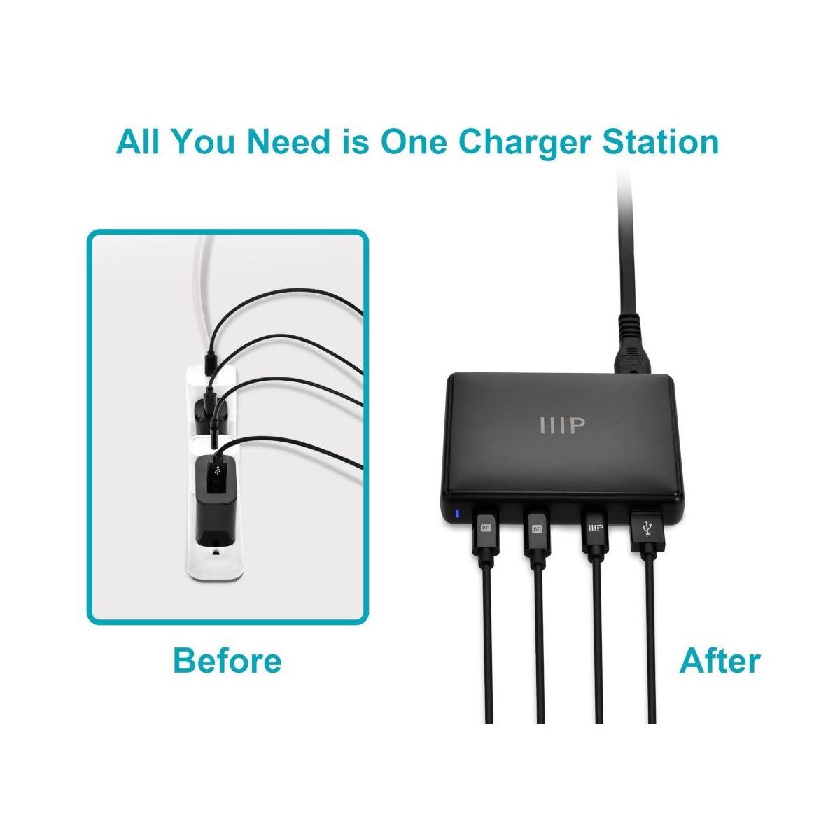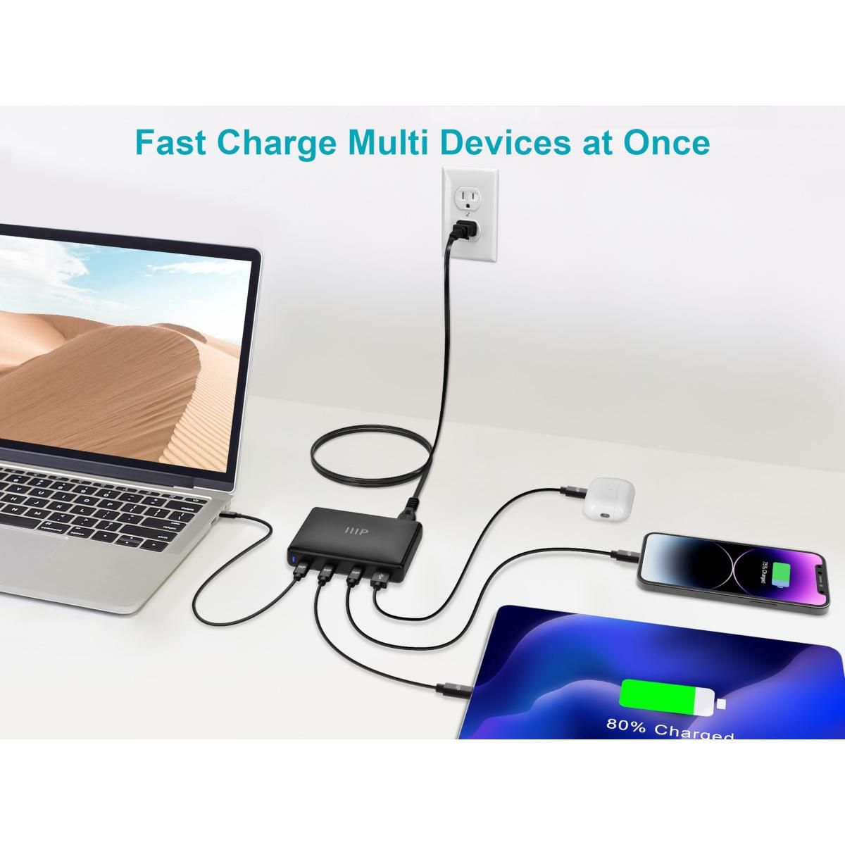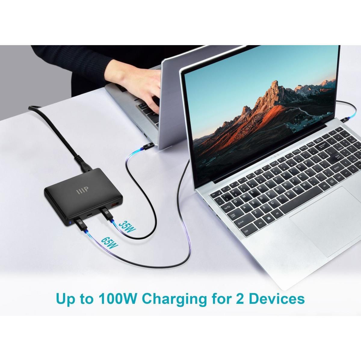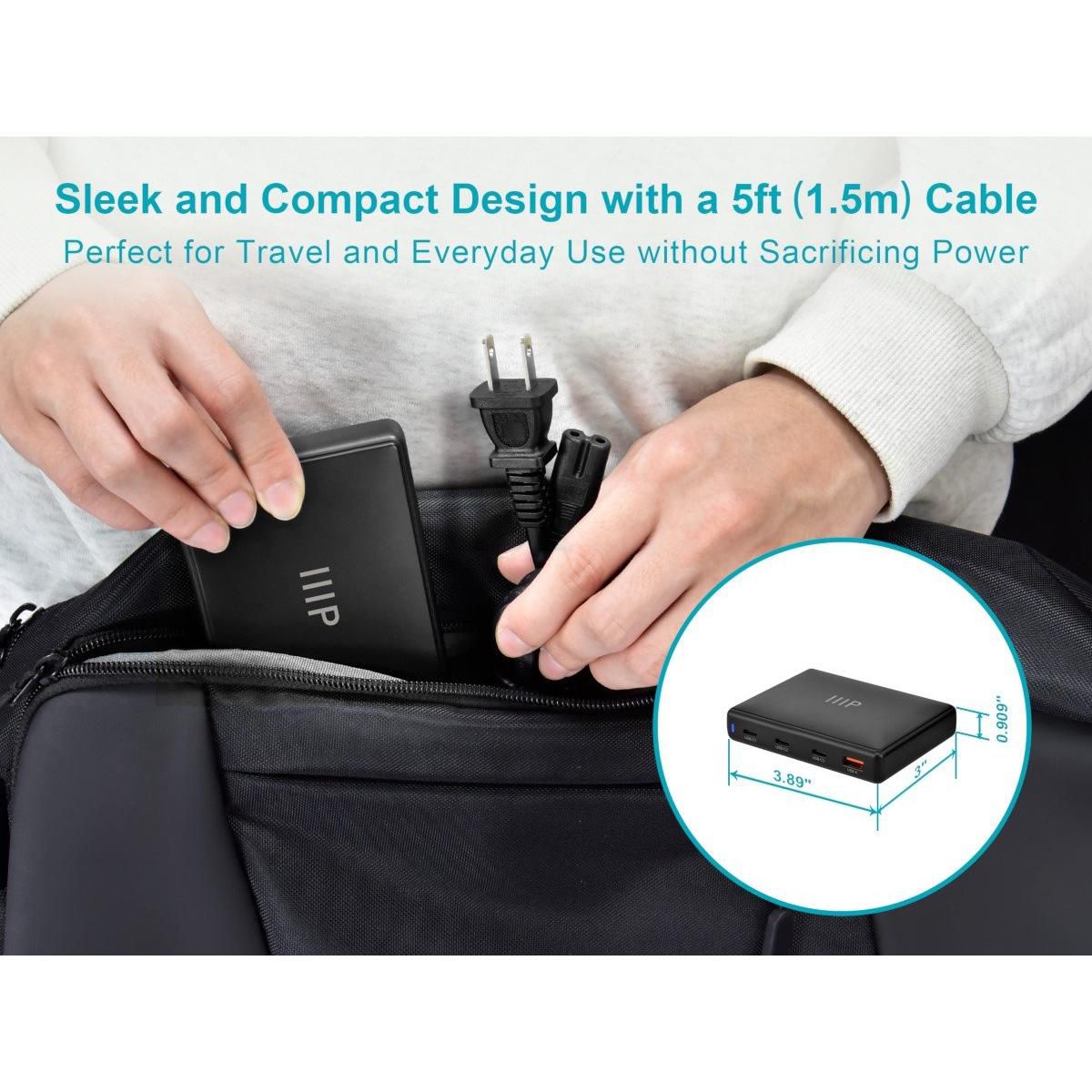 Monoprice 4-Port 100W Desktop GaN Charger, Fast Charge, 3x USB-C, 1x USB-A, Black