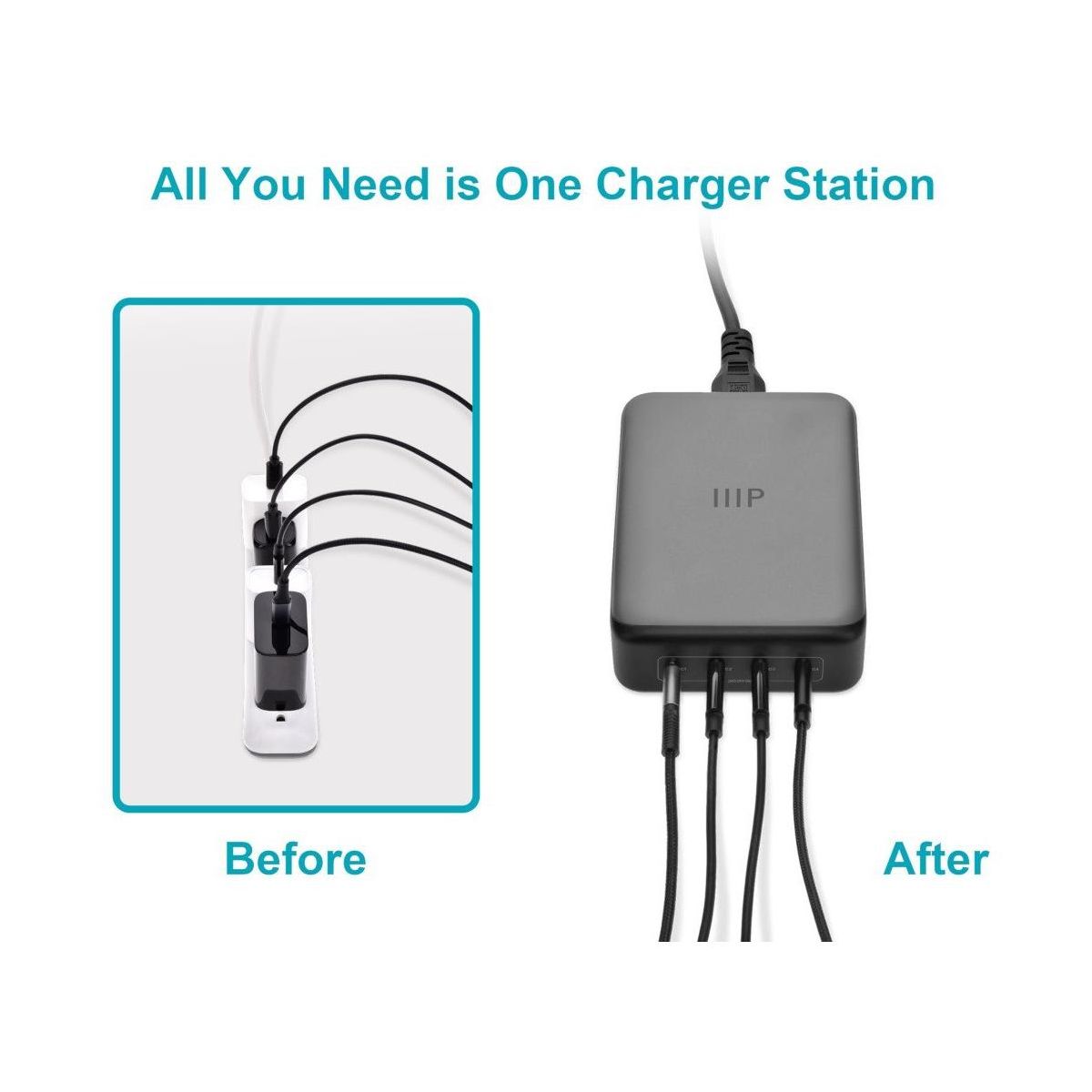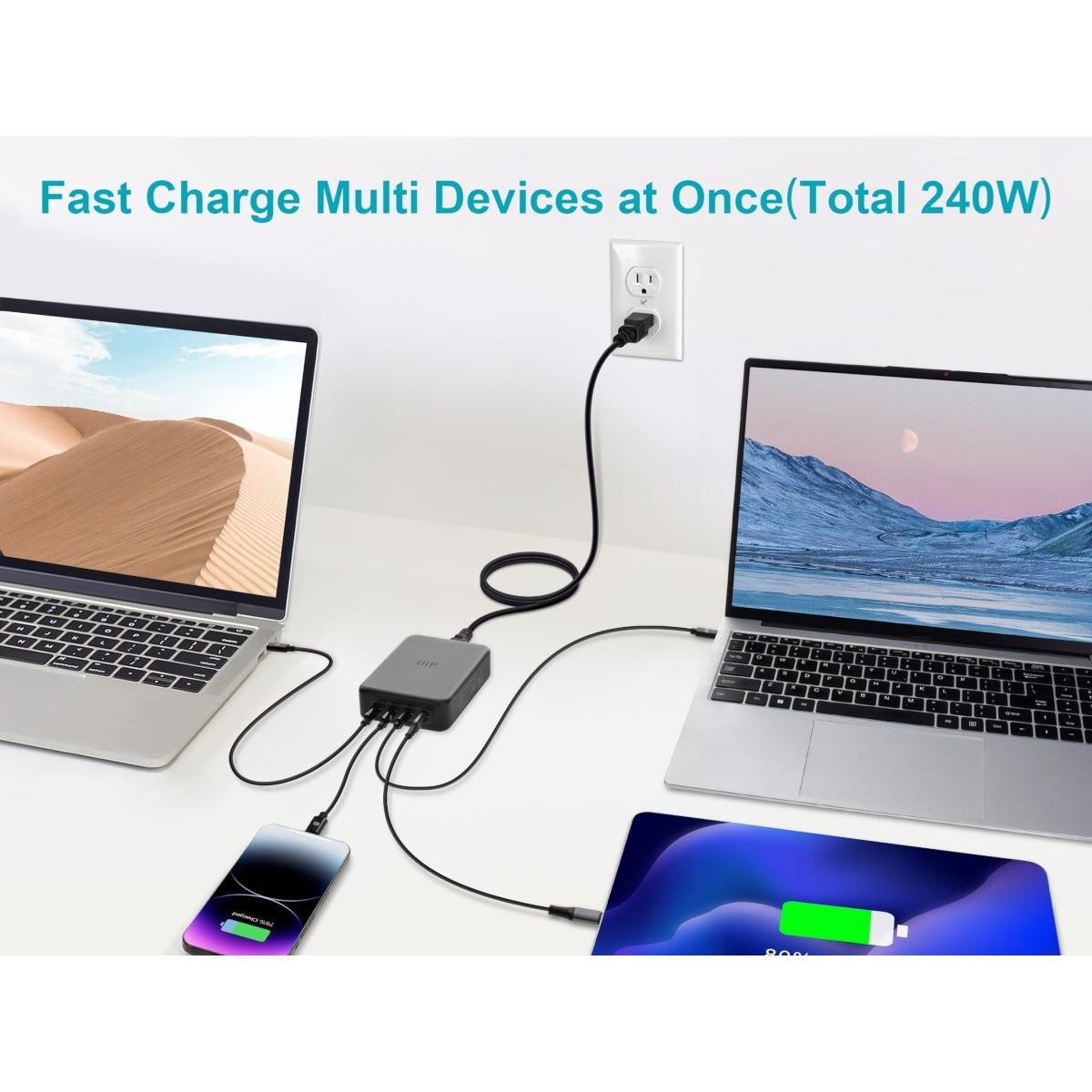 Monoprice 4-Port 240W USB-C GaN Charger, Fast Charge, For Laptops, Tablets, and Phones, Black