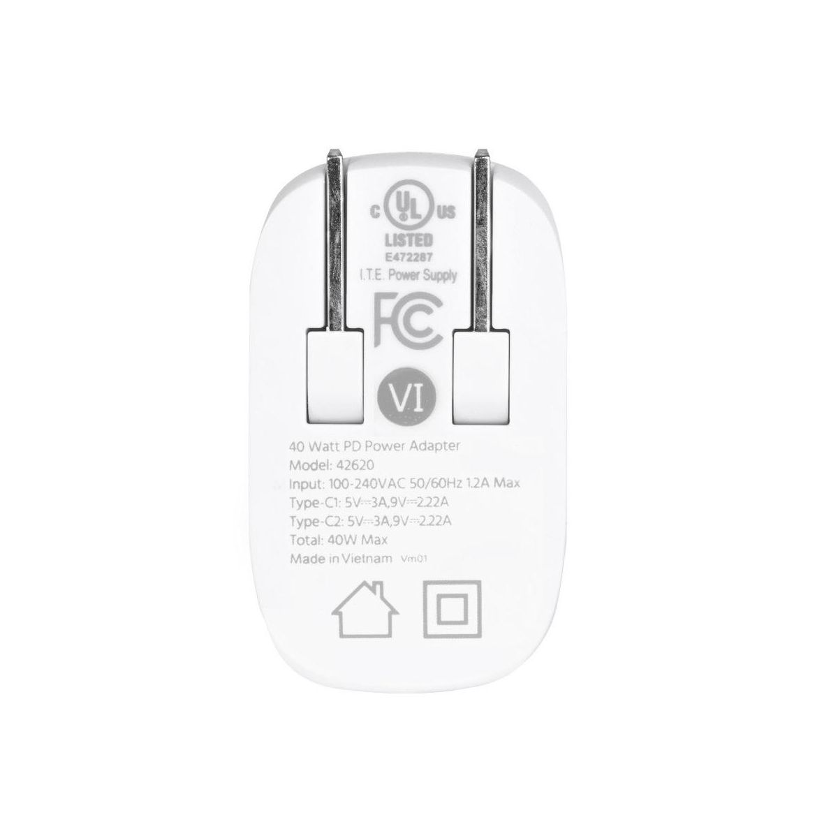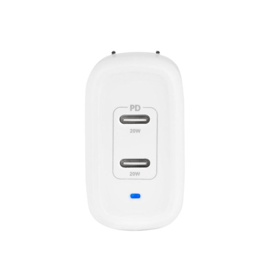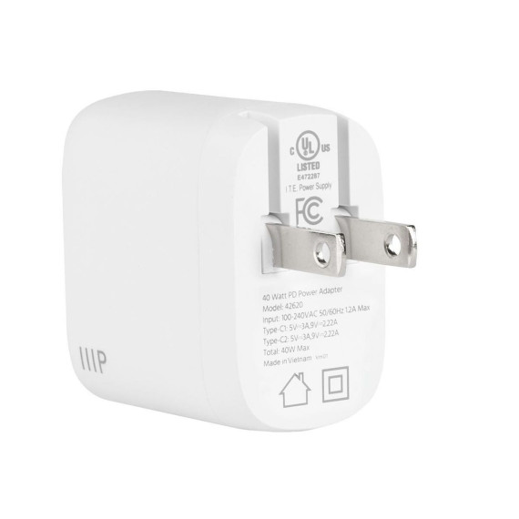 Monoprice 40W 2-port USB-C GaN Charger, Fast Charge, Foldable, Power Delivery for iPad, iPhone, Samsung Galaxy, White