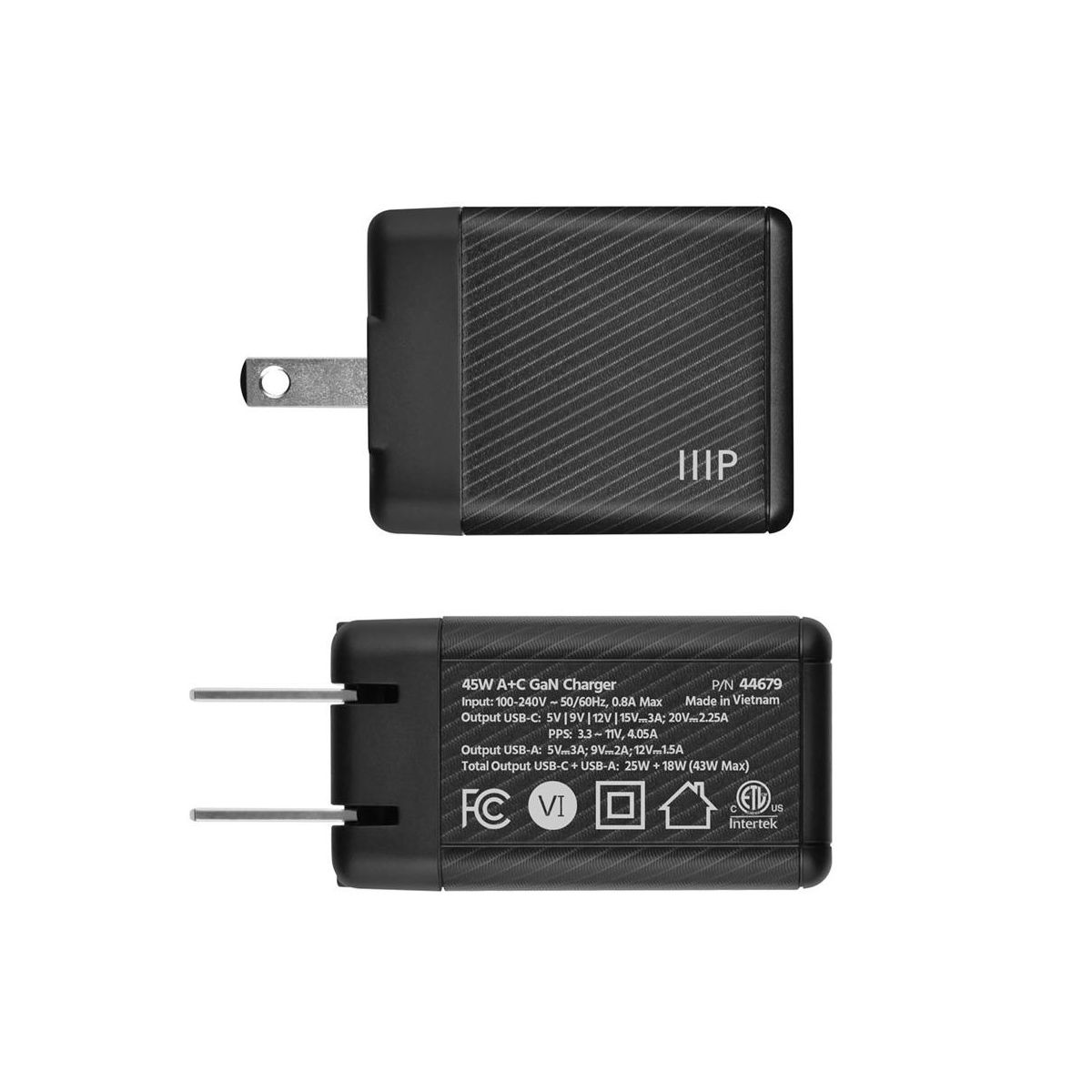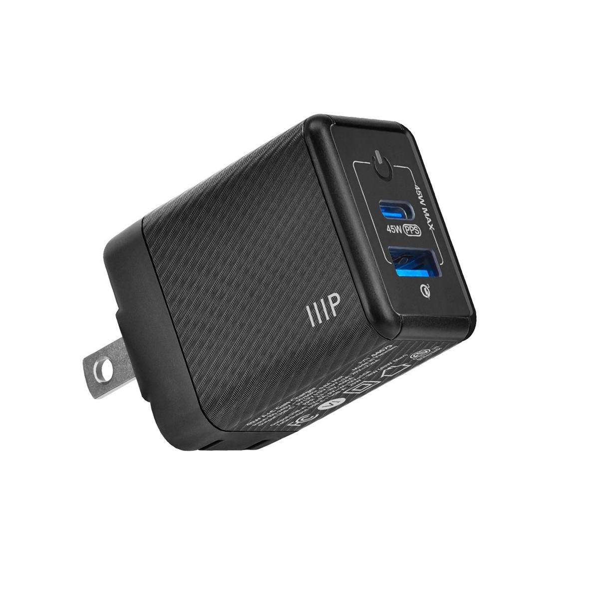 Monoprice Compact 45W 2-Port GaN Charger, Fast Charge, USB-C & USB-A, Universal Compatibility